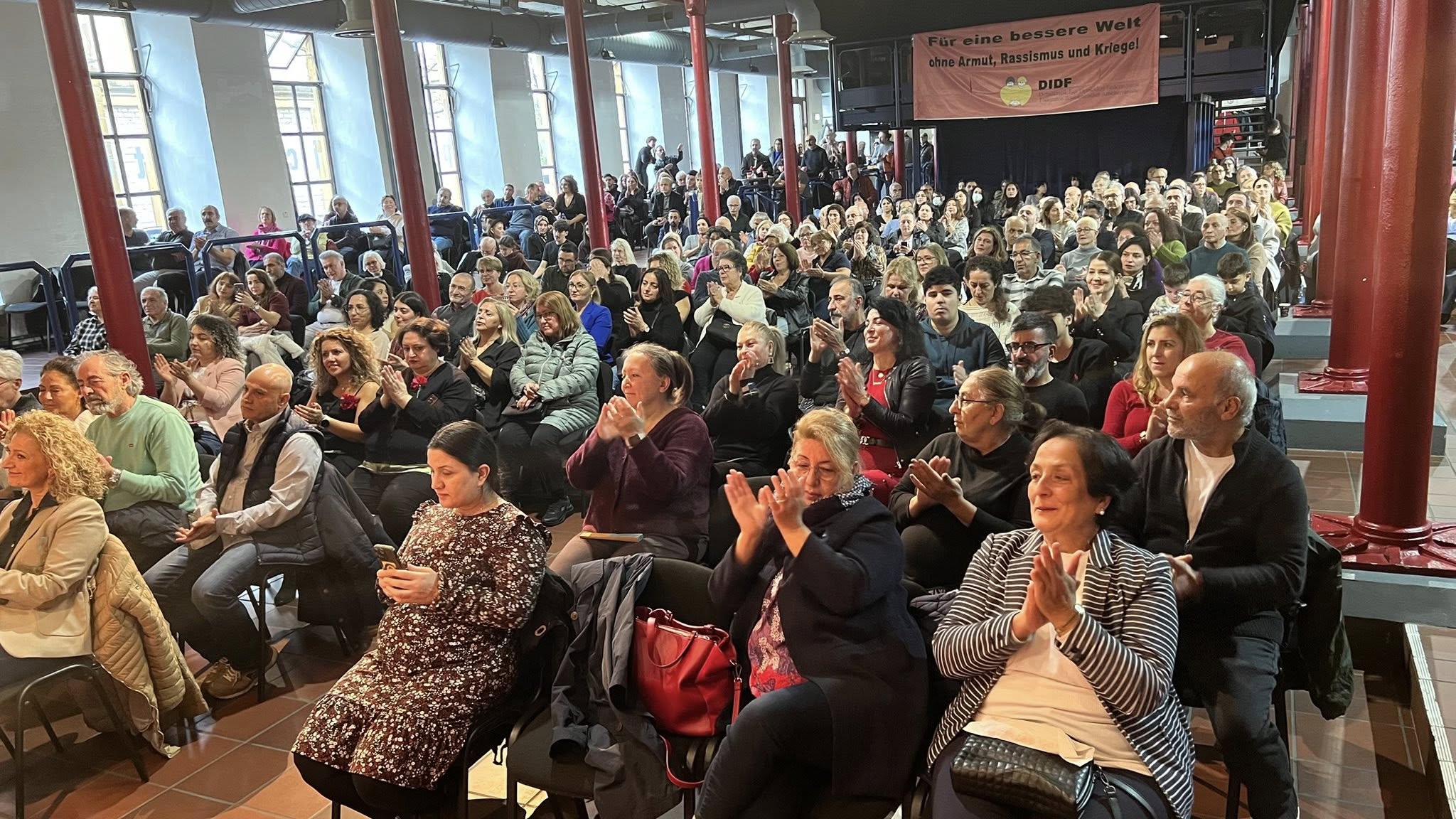 Program, DİDF adına Selçuk Kozan ve Mehtap Yılmaz-Gerlich’in Almanca ve Türkçe yaptıkları açılış ve selamlama konuşmalarıyla başladı. Konuşmalarda, etkinliği düzenleyen Demokratik İşçi Dernekleri Federasyonu (DİDF) tanıtıldı ve federasyonun Almanya’daki çalışmalarına dair örnekler verildi.