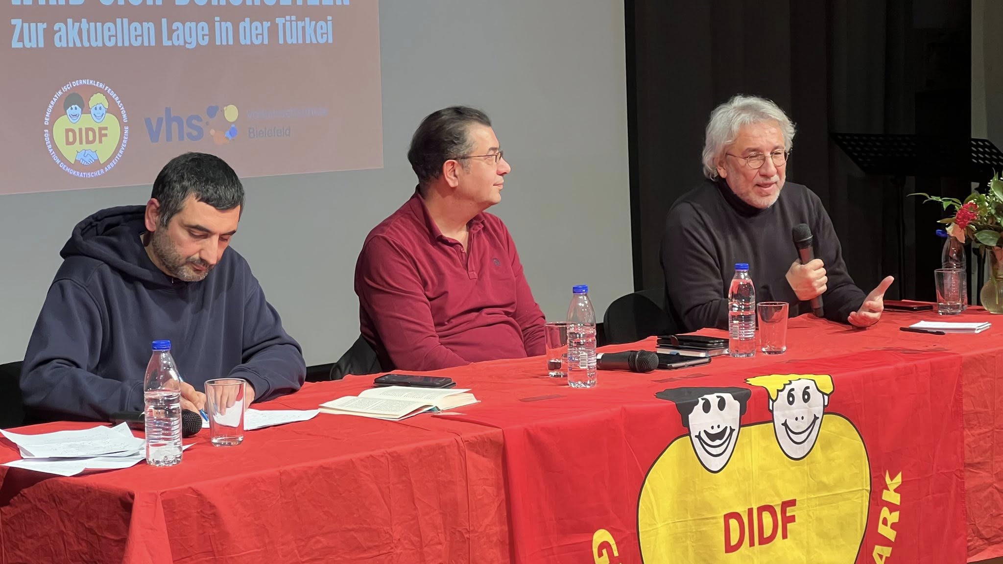 VHS’nin büyük salonunda düzenlenen etkinliği, Bielefeld ve çevre kentlerden gelen yaklaşık 400 kişi izledi. Panelin moderatörlüğünü gazeteci-yazar Yücel Özdemir üstlenirken, Almanca çevirileri Oktay Demirel yaptı.
