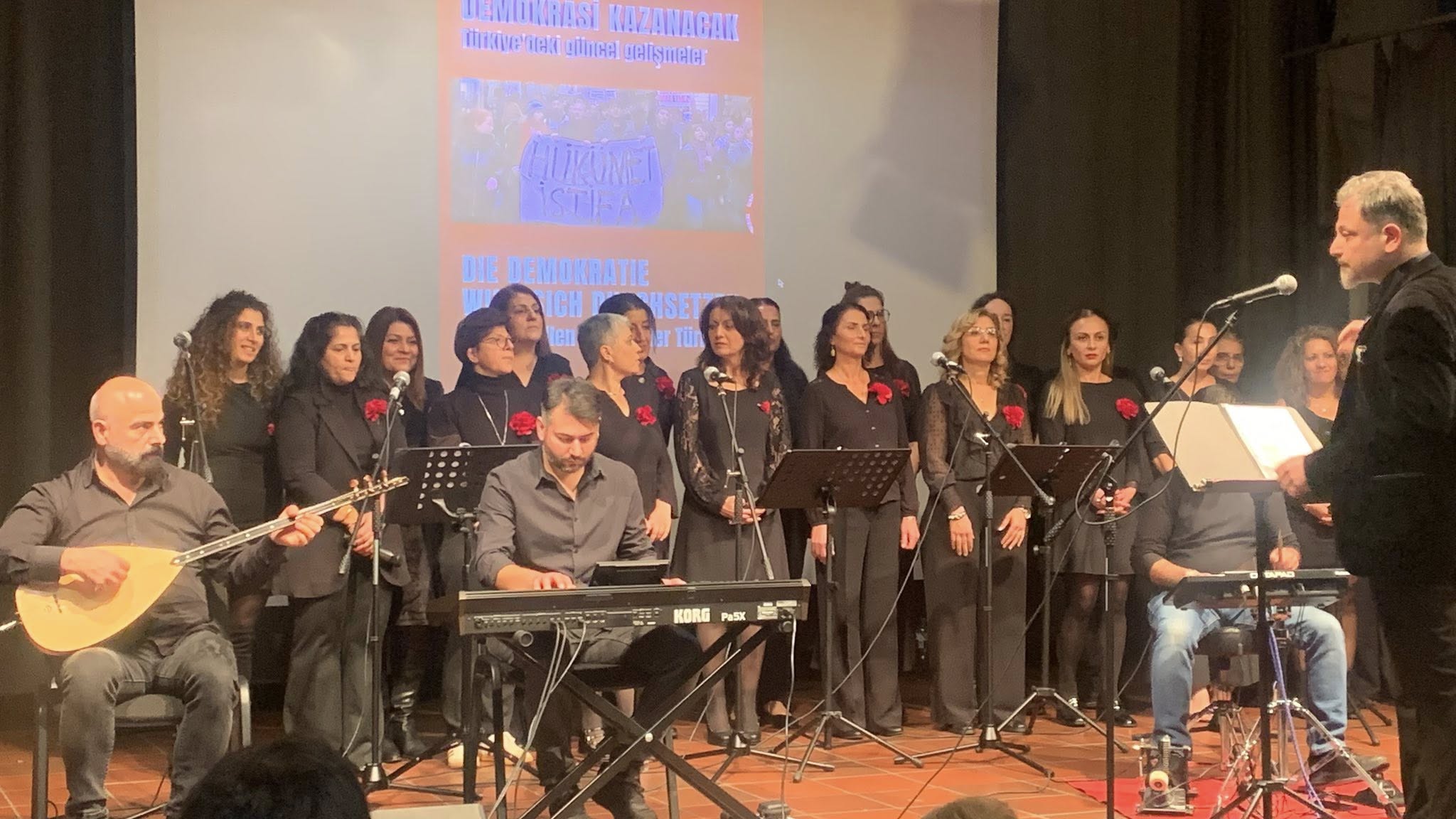 DİDF’in Bielefeld paneli, müzikal bir programla son buldu. Volkan Çolak yönetimindeki DİDF Kadınlar Korosu, müzisyenler Deniz Bahadır, Mesut Kaçar ve Gökhan Güldiken’in enstrümanlarıyla sahne aldı. Kadınlar Korosu, repertuarındaki Türkçe ve Kürtçe ezgilerle seyircilerden büyük beğeni topladı.