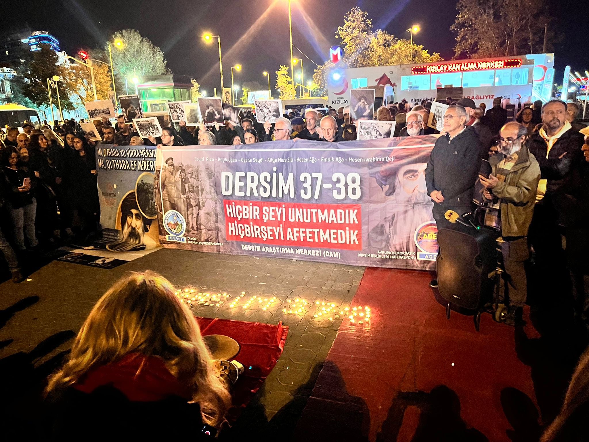 ⌈Haber Merkezi⌉ Dersim Dernekleri Federasyonu (DEDEF), Avrupa Demokratik Dersim Birlikleri Federasyonu (ADEF) ve Dersim Araştırmaları Merkezi (DAM), Dersim 1937–38 Tertelesi’nde idam edilen Seyit Rıza ve yol arkadaşlarını anmak için bugün akşam İstanbul Kadıköy Rıhtım’da yüzlerce kişinin katılımıyla bir anma programı düzenledi. Mumlarla “DERSİM” yazısı oluşturuldu, katledilenlerin fotoğrafları taşındı ve “Hiçbir Şeyi Unutmadık, Hiçbir Şeyi Affetmedik” pankartı açıldı.