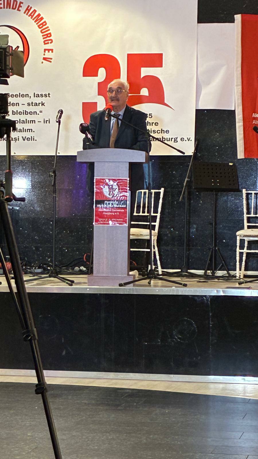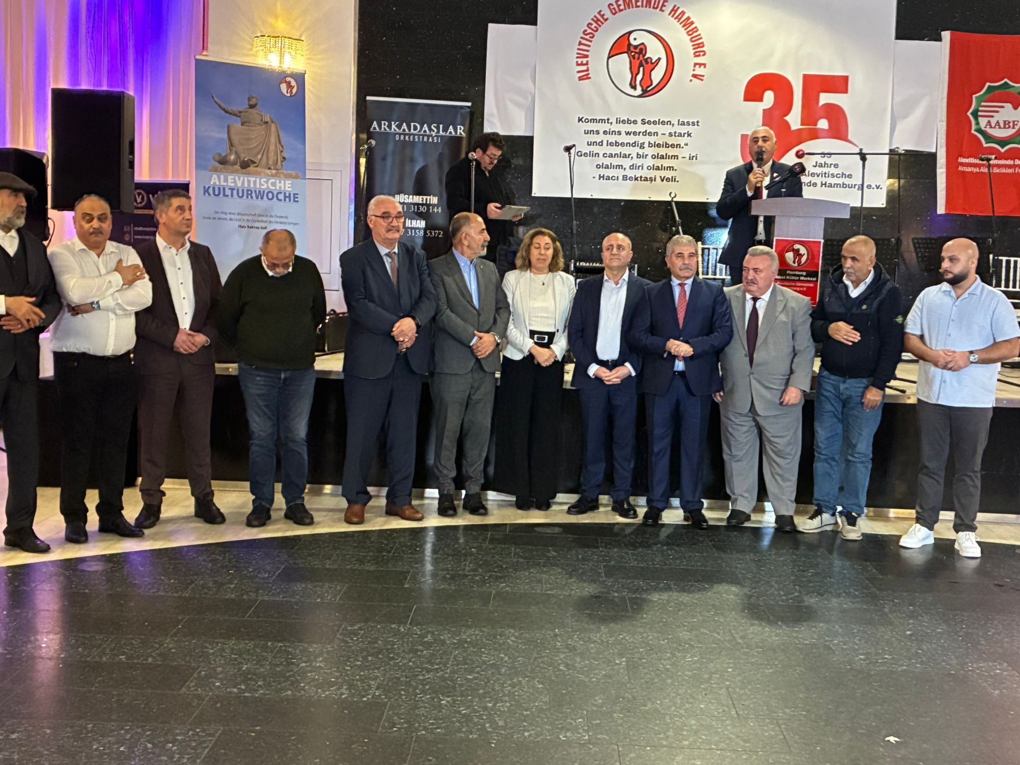 AABF Genel Başkanı Hüseyin Mat, Hamburg’da hizmet veren dört Cemevi — HAKM-Cemevi, Hat Haak-Bir Cemevi, Bergedorf Cemevi ve Harburg Cemevi — için de özel teşekkürlerini iletti. Bu kurumların toplumsal dayanışmaya sundukları katkılar ve özverili çalışmaları nedeniyle minnettarlığını dile getiren Mat, 35. yıl kutlamalarının Alevi toplumuna moral, güç ve mücadele azmi kazandırdığını söyledi.
