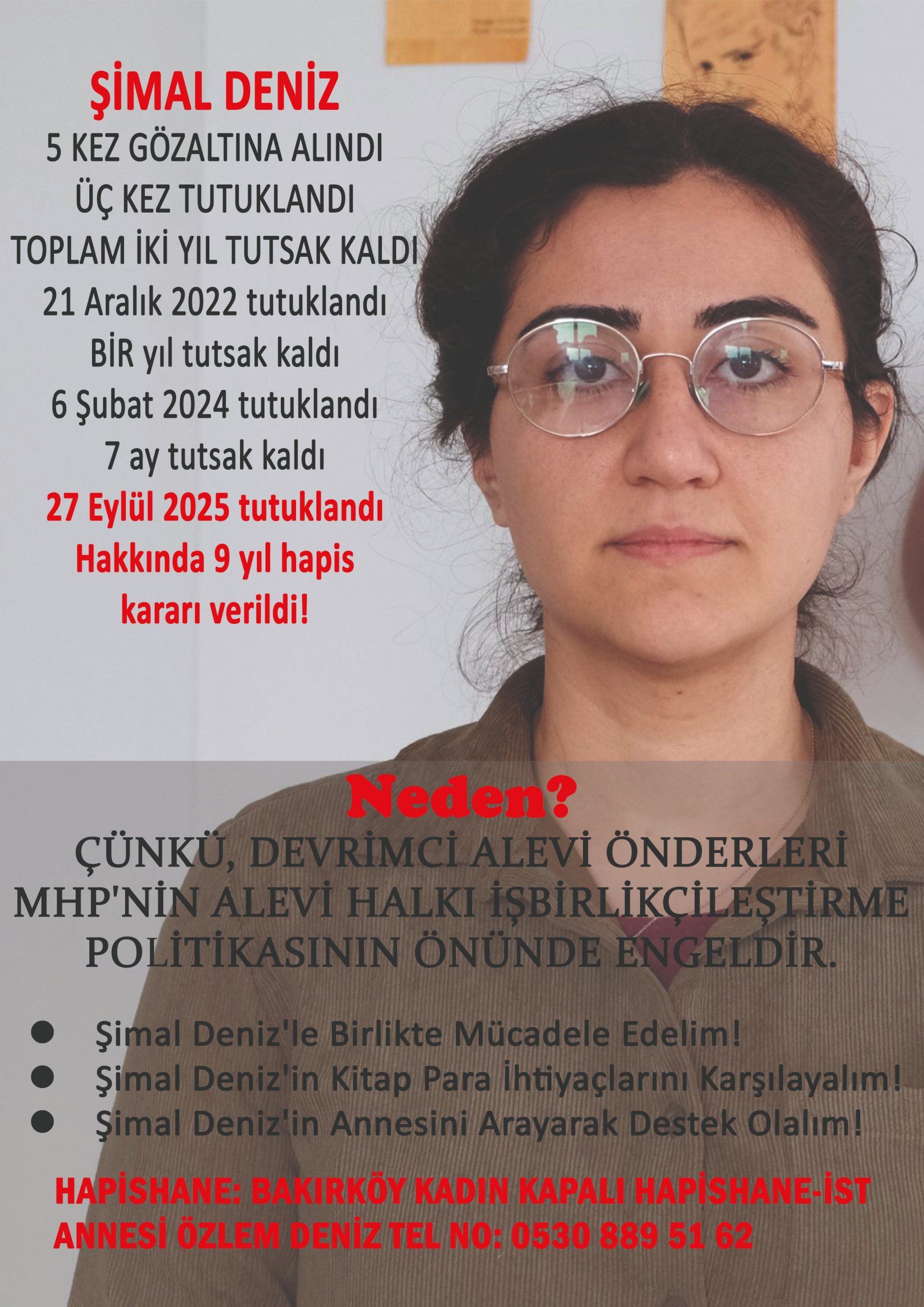 Son olarak 27 Eylül 2025’te tekrar tutuklanan Şimal Deniz hakkında 9 yıl hapis cezası verildiği belirtildi.