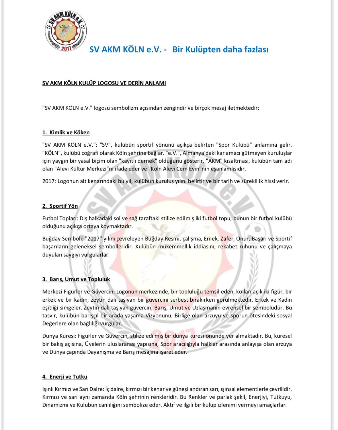 SV AKM Köln, Kulüp Logosunun Derin Anlamını Kamuoyuyla Paylaştı