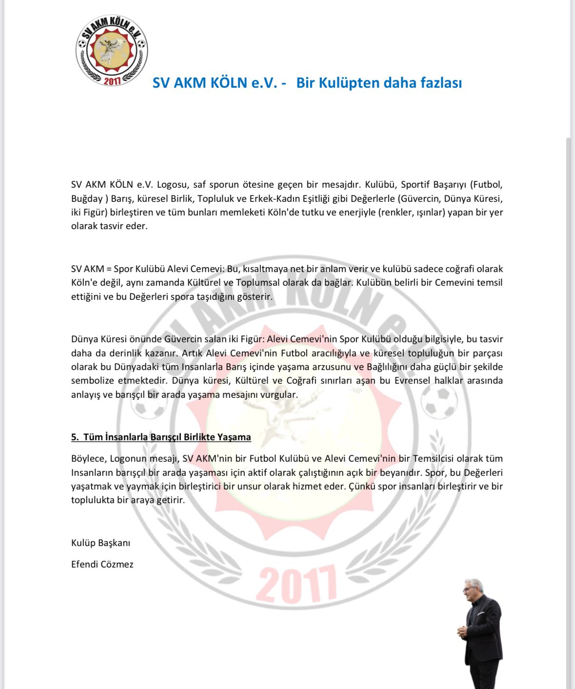 Kulüp Başkanı Efendi Cözmez yaptığı açıklamada, SV AKM Köln’ün sporun birleştirici gücüne inandığını vurgulayarak şu ifadeleri kullandı: