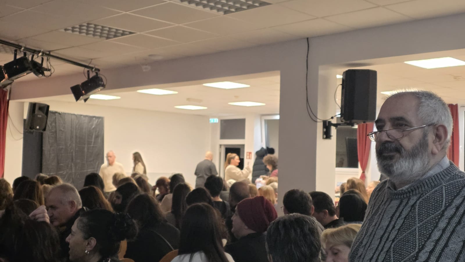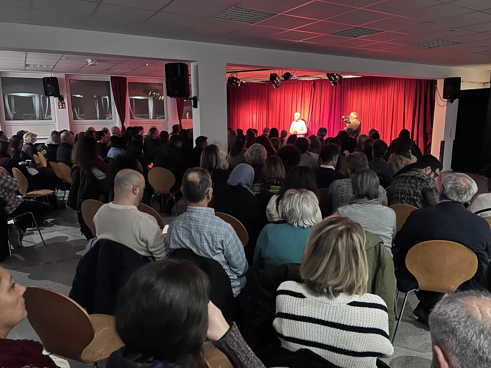 Gösterinin ardından sahneye çıkan AKM–Cemevi Köln Başkanı Gökhan Berk, oyuncularla tek tek tokalaşarak Hayatro ekibine ve Cemevi emekçilerine teşekkür etti. Oyunun topluma ayna tutan yönünün önemine dikkat çeken Berk, sanatın toplumdaki yaralara dokunan dönüştürücü gücünü vurguladı. Ardından AKM–Cemevi Köln tarafından oyunculara çiçekler takdim edildi.