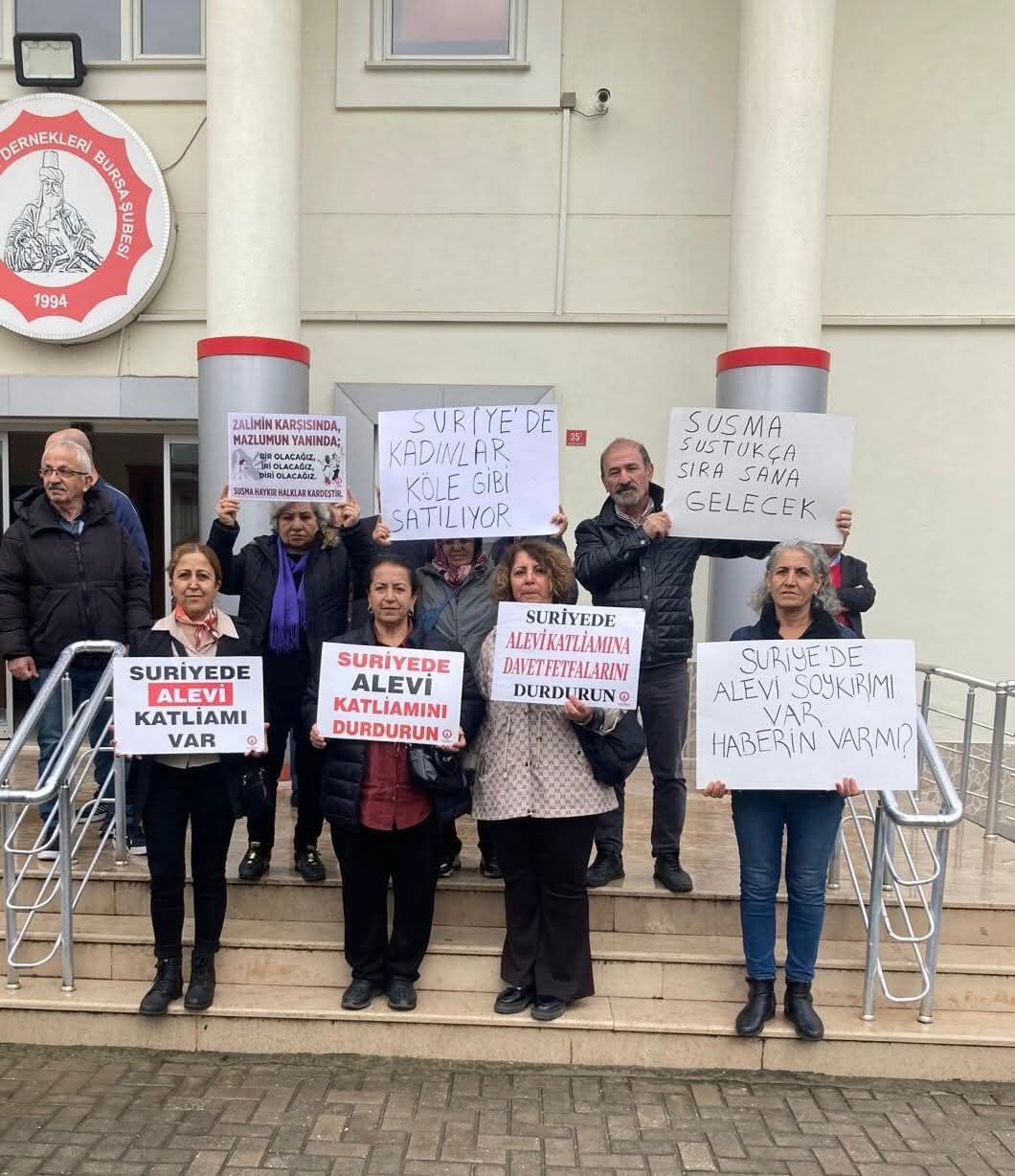 ⌈Haber Merkezi⌉ Bursa Alevi Dernekleri Platformu ile Bursa Demokrasi Güçleri Platformu, Suriye’de Alevi toplumuna yönelik süregelen saldırılara ilişkin ortak bir basın açıklaması yayımlayarak, yaşananların sistematik bir soykırım niteliği taşıdığını vurguladı. Açıklamada, özellikle sahil bölgesi başta olmak üzere Alevilerin yaşadığı alanlarda saldırıların giderek arttığına dikkat çekildi.