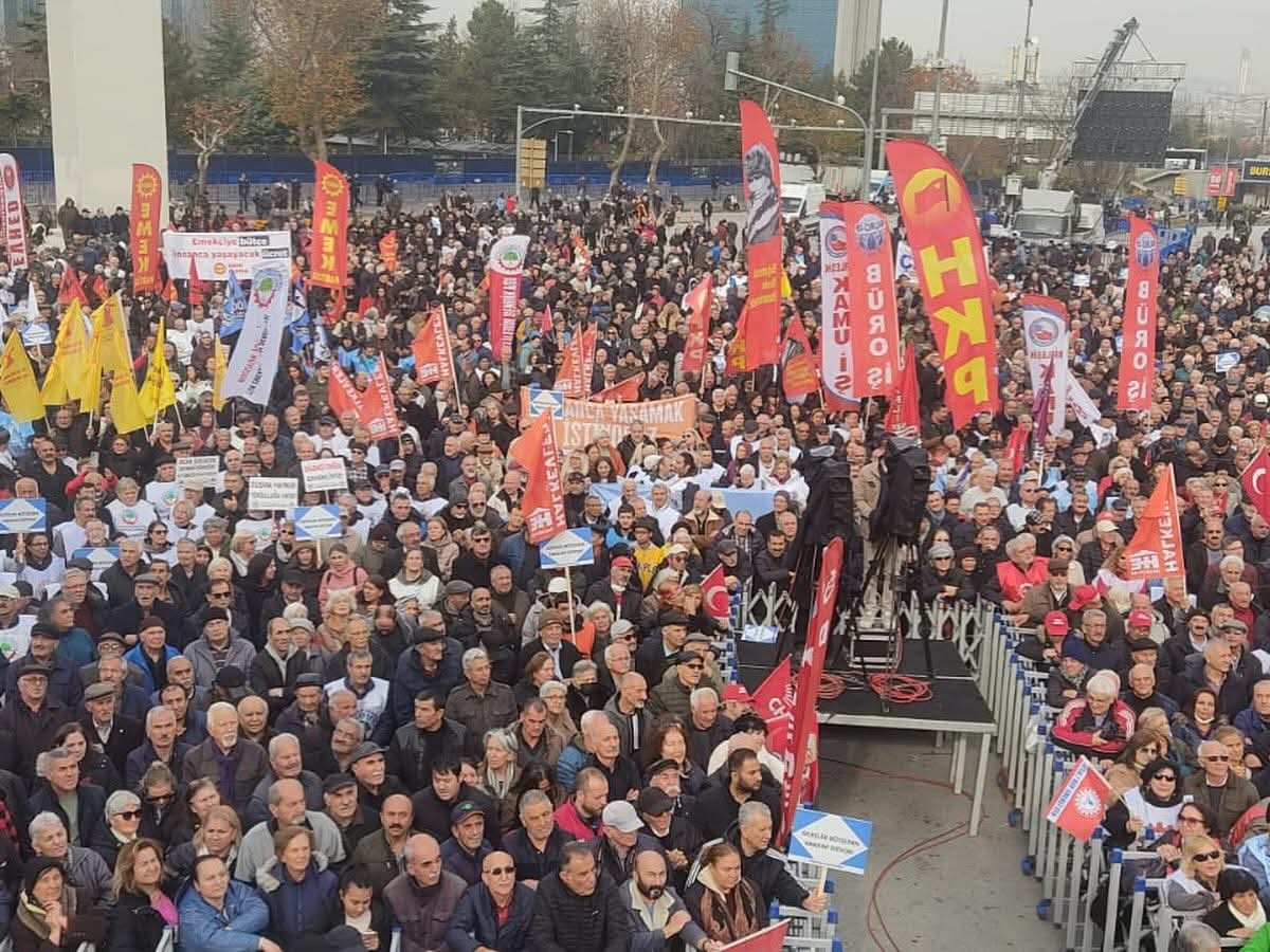 Yurttaş Birlikteliği’nin çağrısıyla düzenlenen miting öncesinde kitle, Atatürk Kültür Merkezi önünde bir araya gelerek Tandoğan Meydanı’na yürüdü. Yürüyüşte “Emekliler, emekçiler bütçeden hakkını istiyor” pankartı açıldı. “AKP’den hesabı emekliler soracak”, “Hak, hukuk, adalet” ve “Kurtuluş yok tek başına ya hep beraber ya hiçbirimiz” sloganları atılırken, “Emekçiler bütçeden hakkını istiyor” ve “Kadınlar bütçeden hakkını istiyor” yazılı dövizler taşındı.