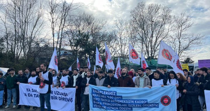 ⌈AHA⌉ Buca Belediyesi’nde çalışan işçiler, imzalanan taahhüt protokolüne rağmen Kasım ayından kalan çıplak maaşlarının, gıda kartı ve mesai alacaklarının ödenmemesi üzerine tüm birimlerde tam gün iş bıraktı. İzmir’in Buca ilçesinde gerçekleşen eylemde, belediyeye bağlı birimlerde hizmet üretimi gün boyu durduruldu.
