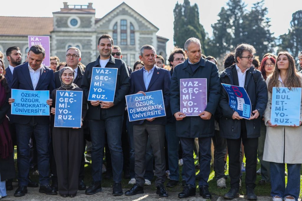 ⌈AHA⌉ Cumhuriyet Halk Partisi (CHP) Genel Başkanı Özgür Özel, Boğaziçi Üniversitesi’nde kayyım rektör uygulamasına karşı akademisyenlerin sürdürdüğü 1261’inci nöbete katılarak destek verdi. Rektörlük binasına sırtını dönen akademisyenlerle birlikte protestoya katılan Özel, öğrencilerle forumda bir araya geldi ve ardından önemli açıklamalarda bulundu.