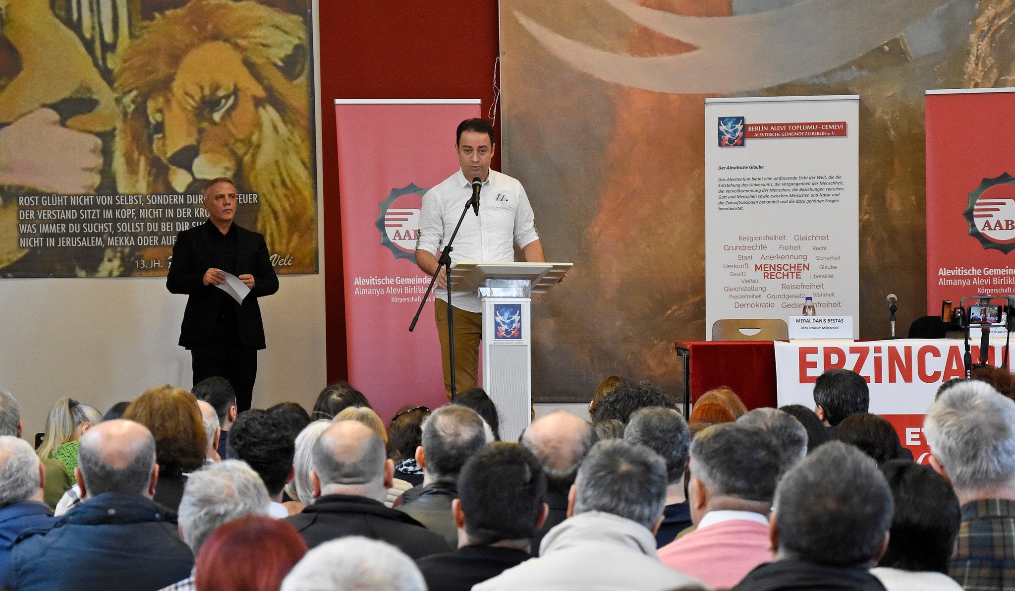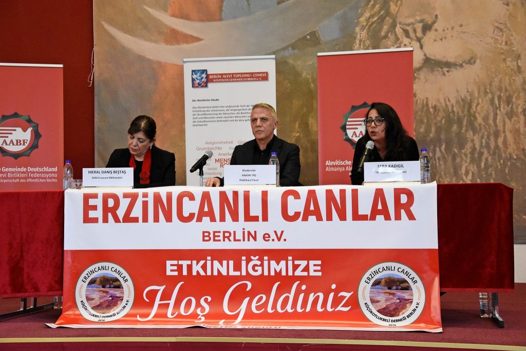 BAT Cemevi ve Erzincanlı Canlar Berlin Derneği tarafından ortak düzenlenen panel, önceki gün Cemevi ana salonunda bir çok kardeş dernek, siyasi parti, sivil toplum kuruluşları temsilcilerinin yanı sıra yoğun bir katılımla gerçekleşti. Panel öncesi açılış ve selamlama konuşmasını BAT Yönetim Kurulu 2. Başkanı Kadir Şahin yaptı.