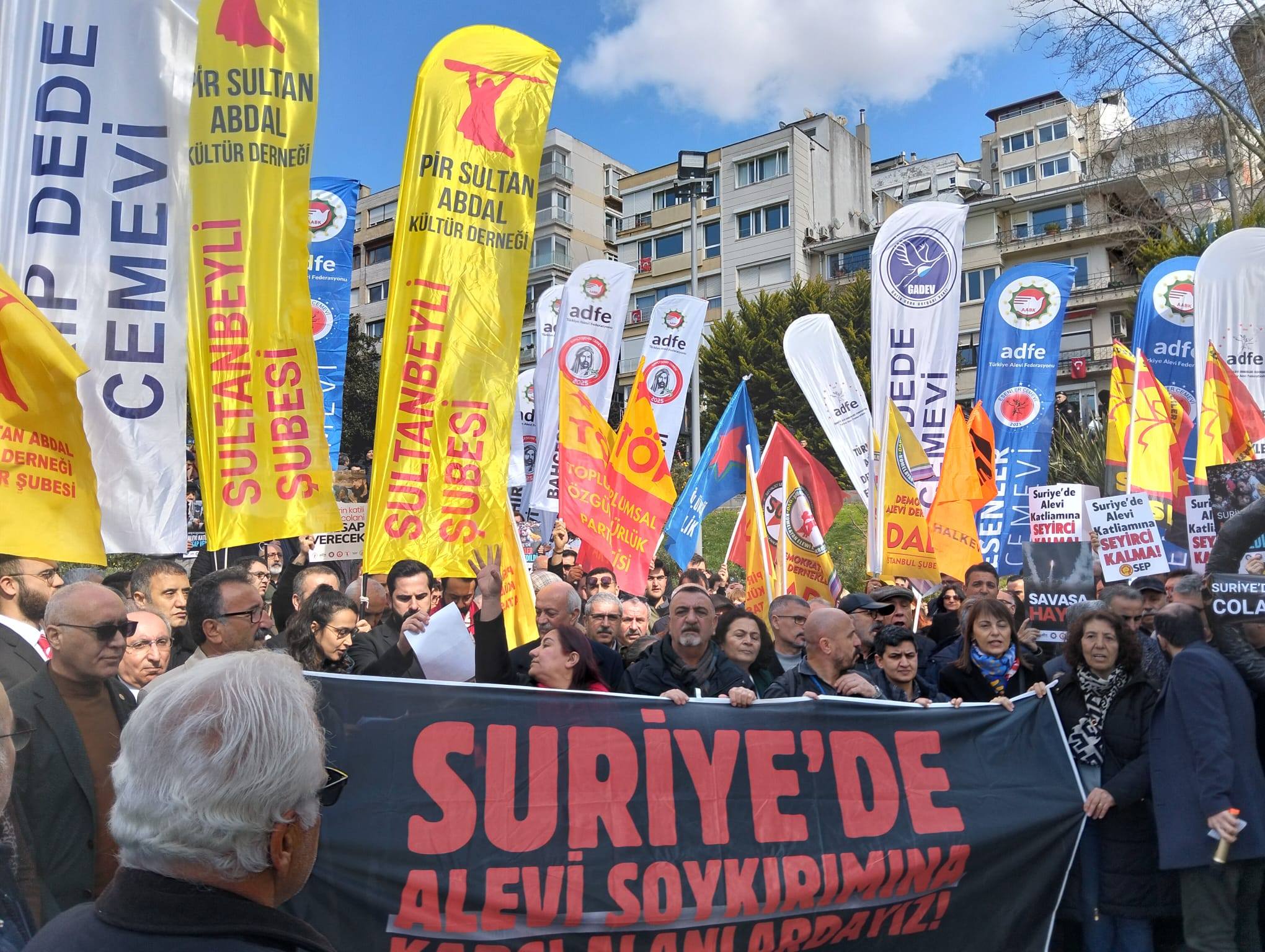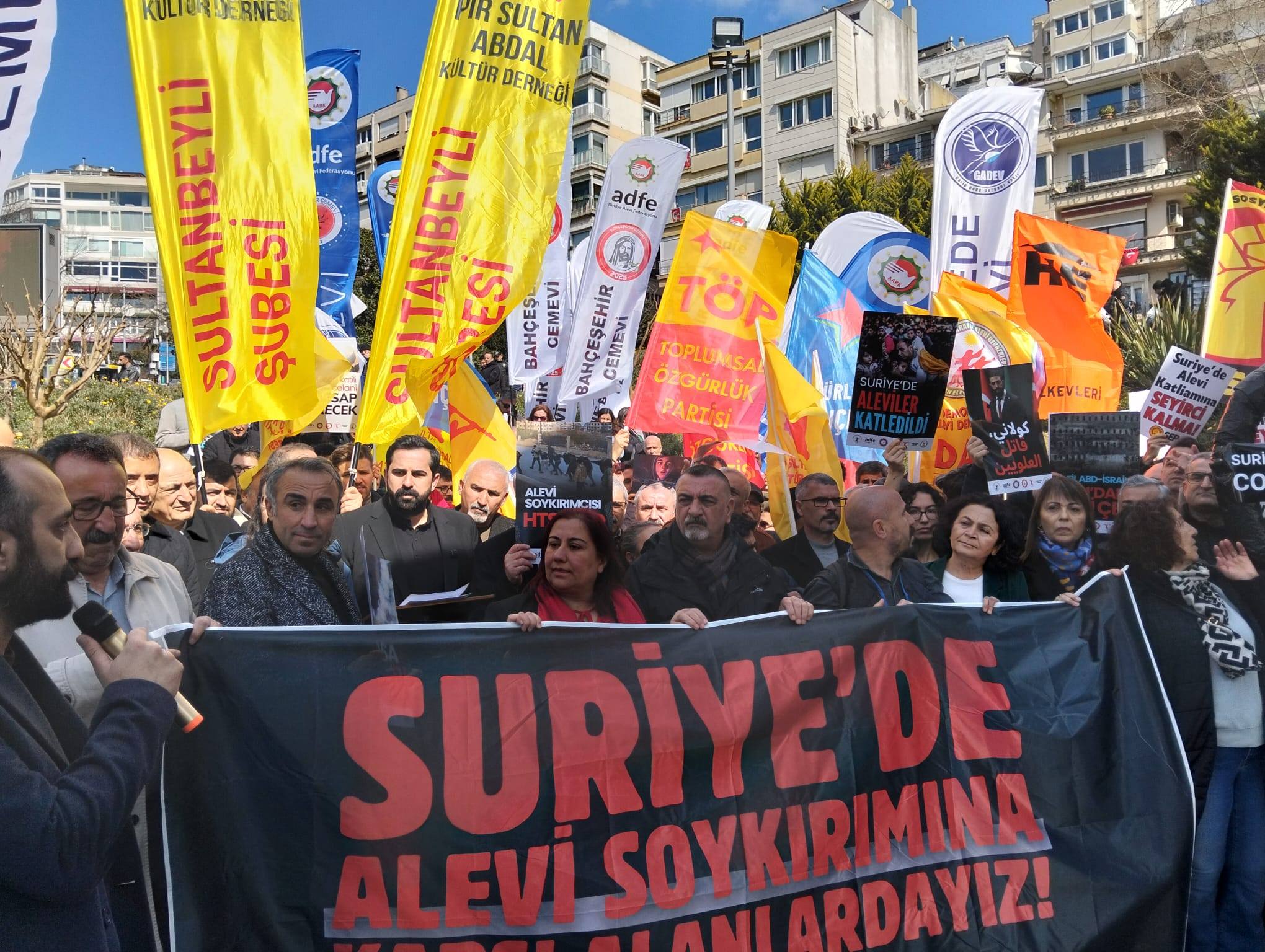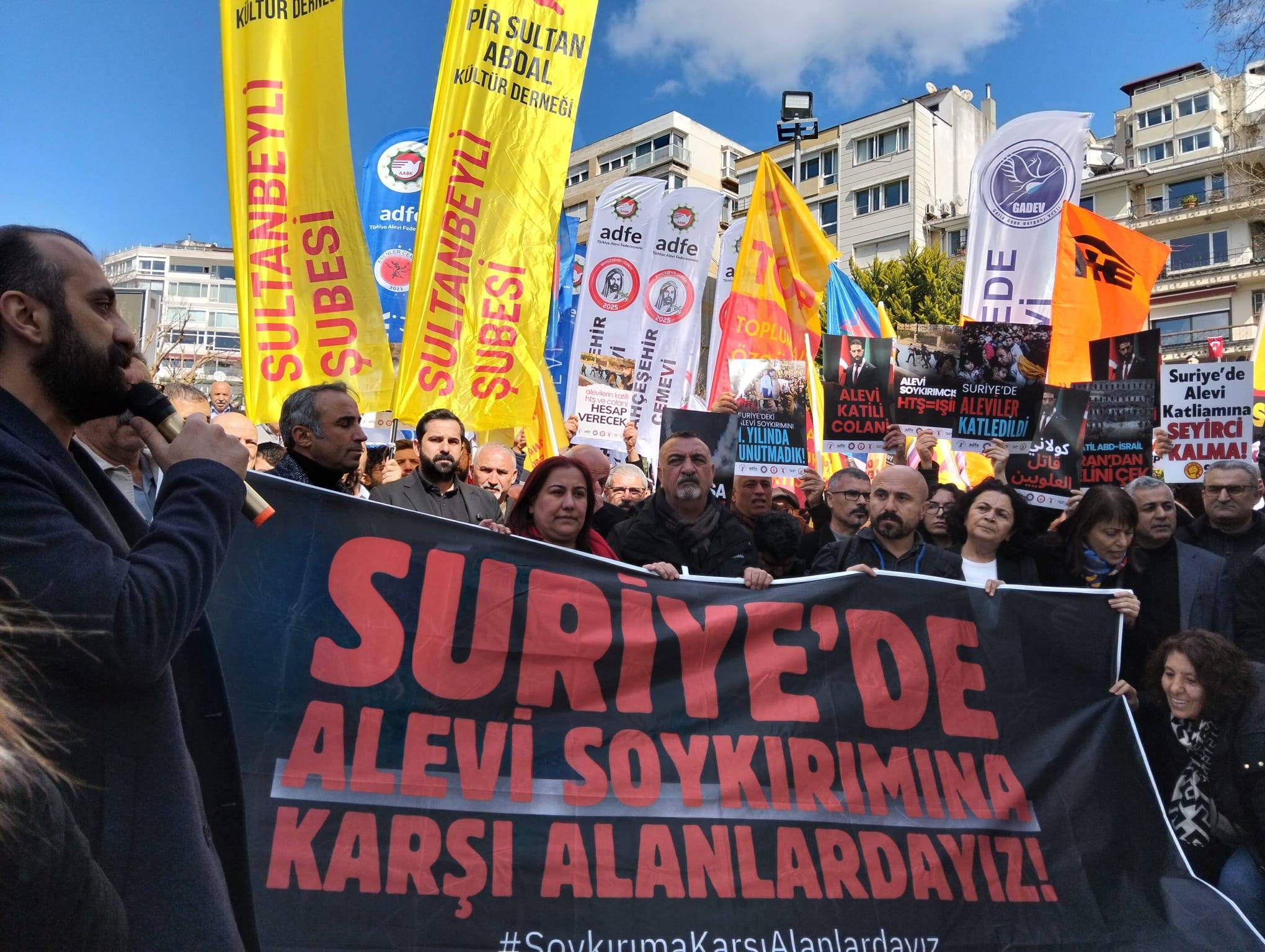 ⌈AHA⌉ Suriye’de Alevilere yönelik katliamların birinci yıl dönümü dolayısıyla İstanbul’da anma ve protesto etkinliği düzenlendi. Alevi kurumlarının çağrısıyla Maçka Demokrasi Parkı’nda gerçekleştirilen basın açıklamasına çok sayıda siyasi temsilci, demokratik kitle örgütü temsilcisi ve yurttaş katıldı. Etkinlikte Suriye’de Alevilere yönelik saldırıların durdurulması ve sorumluların yargılanması çağrısı yapıldı.