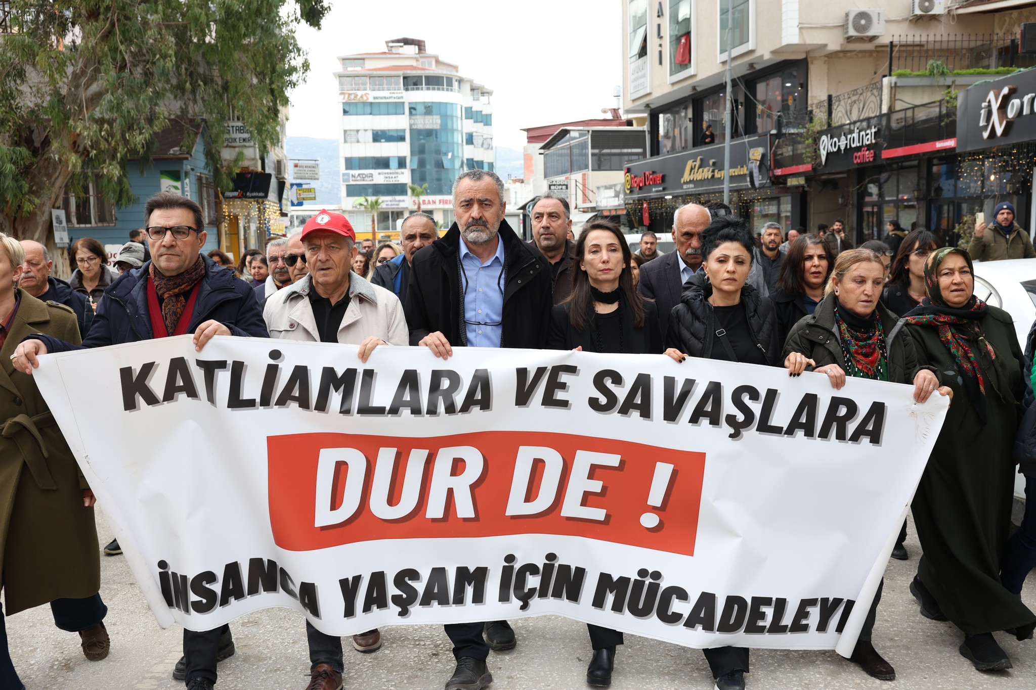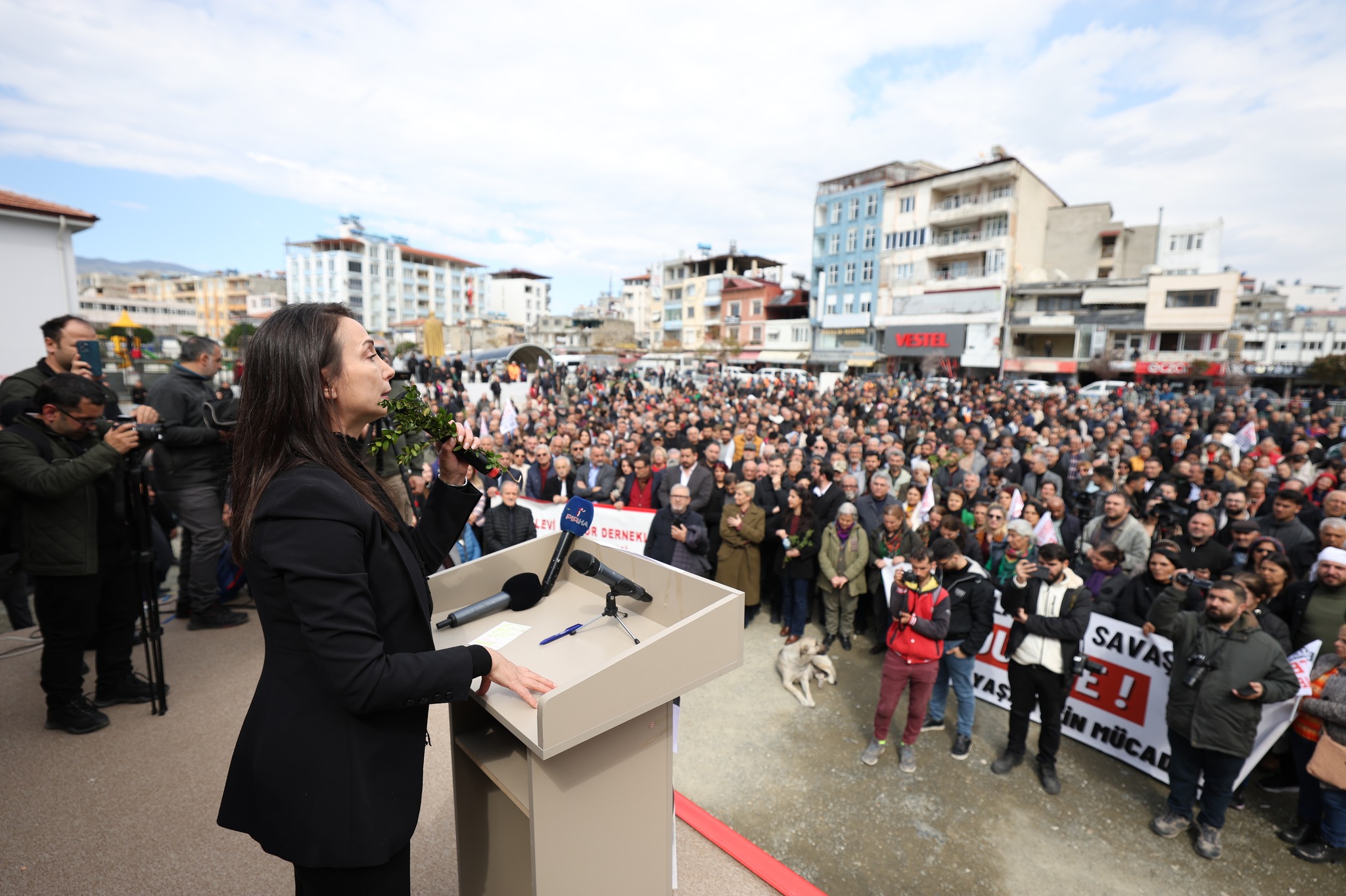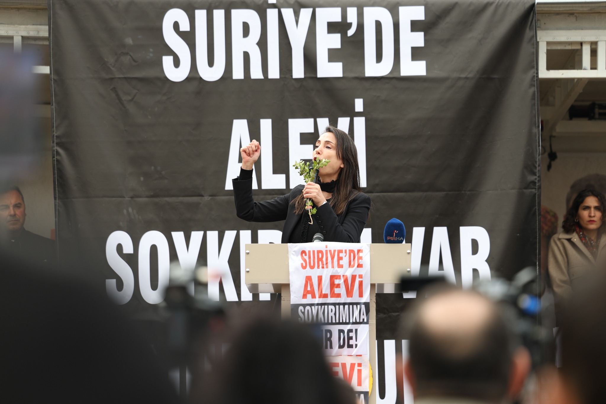 ⌈AHA⌉ DEM Parti Eş Genel Başkanı Tülay Hatimoğulları, Suriye’de Alevilere yönelik katliamların yıl dönümü dolayısıyla Hatay’ın Samandağ ilçesinde düzenlenen “1 Yıldır Süren Soykırıma Sessiz Kalma” mitinginde konuştu. Hatimoğulları, Ortadoğu’da yaşanan savaş ve çatışmalara dikkat çekerek çözümün halkların dayanışması ve demokratik bir yönetim anlayışı olduğunu vurguladı.