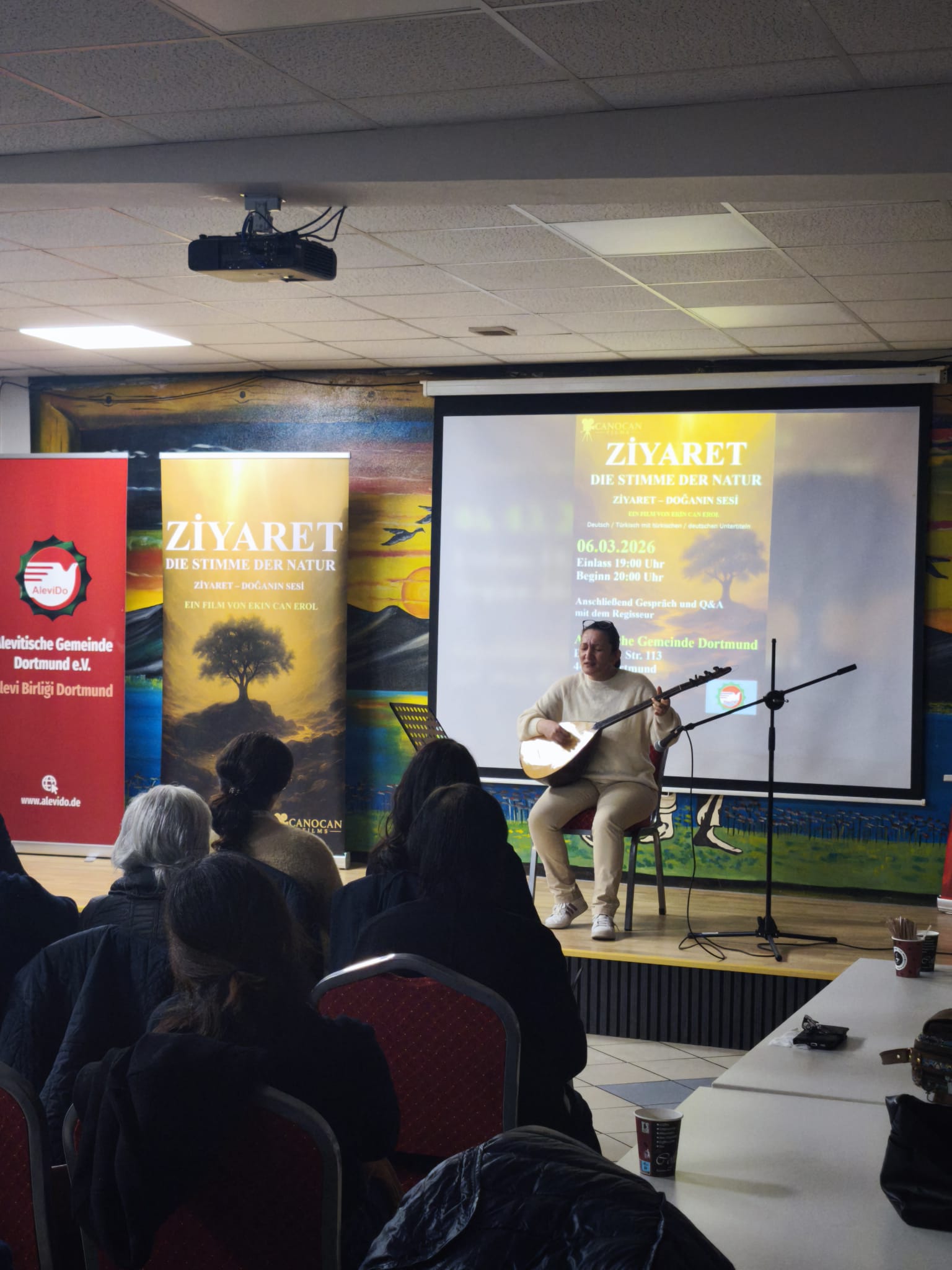 Alevitische Gemeinde Dortmund’da düzenlenen etkinlikte, Alevi inancının kutsal mekânlarını ve doğa ile kurulan bağı konu alan “Ziyaret – Die Stimme der Natur” belgeseli izleyicilerle buluştu. Gösterimin ardından belgeselin yönetmeni Ekin Can Erol ile katılımcılar arasında samimi bir sohbet gerçekleştirildi.