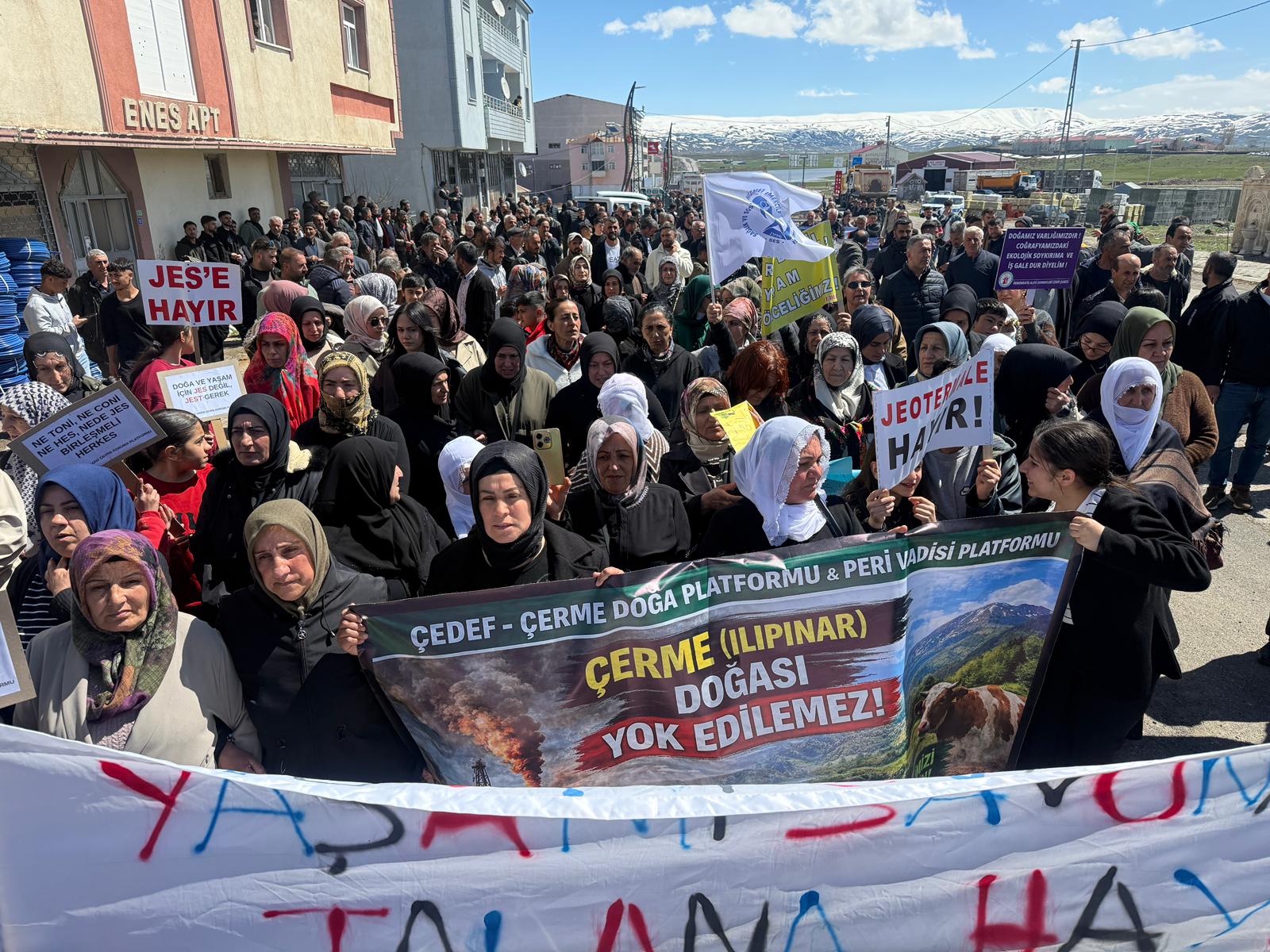 Karlıova’da doğa nöbetine dönüşen miting, farklı konuşmacıların ve sivil toplum temsilcilerinin açıklamalarıyla sürerken, alandan “Doğamıza dokunmayın” ve “Satılık toprak yok” sloganları yükseldi.