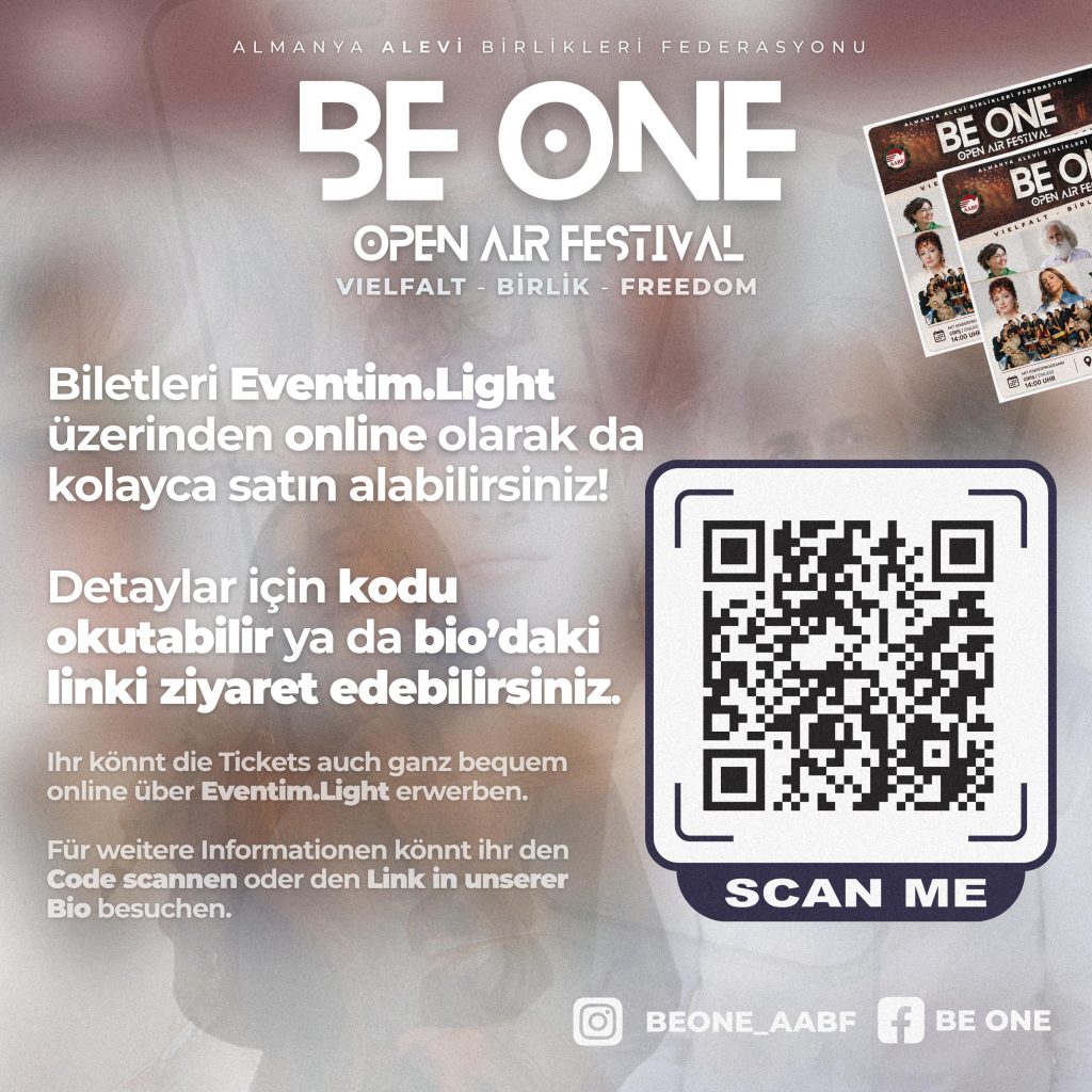 ⌈AHA⌉ Almanya Alevi Birlikleri Federasyonu (AABF) tarafından düzenlenecek “BE ONE Open Air Festival” için biletlerin yoğun talep üzerine online satışa açıldığı duyuruldu. Etkinlik, “çeşitlilik, birlik ve özgürlük” temalarıyla gerçekleştirilecek.