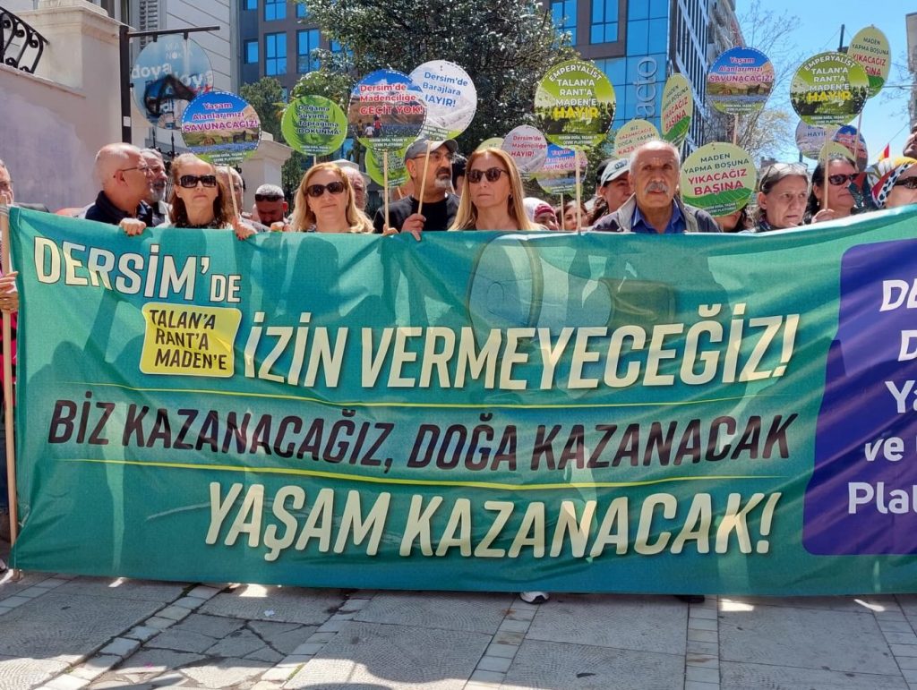 Buluşmada platform adına Hatun Esen ve Ulaş Yeğin tarafından okunan basın açıklamasında, Dersim’in büyük bir bölümünün maden sahalarıyla kuşatılmak istendiği vurgulandı. Açıklamada, Sekasur bölgesinde planlanan pomza madenine karşı yürütülen direnişin başarıyla sonuçlandığı hatırlatılarak, yeni projelere karşı da mücadele çağrısı yapıldı.