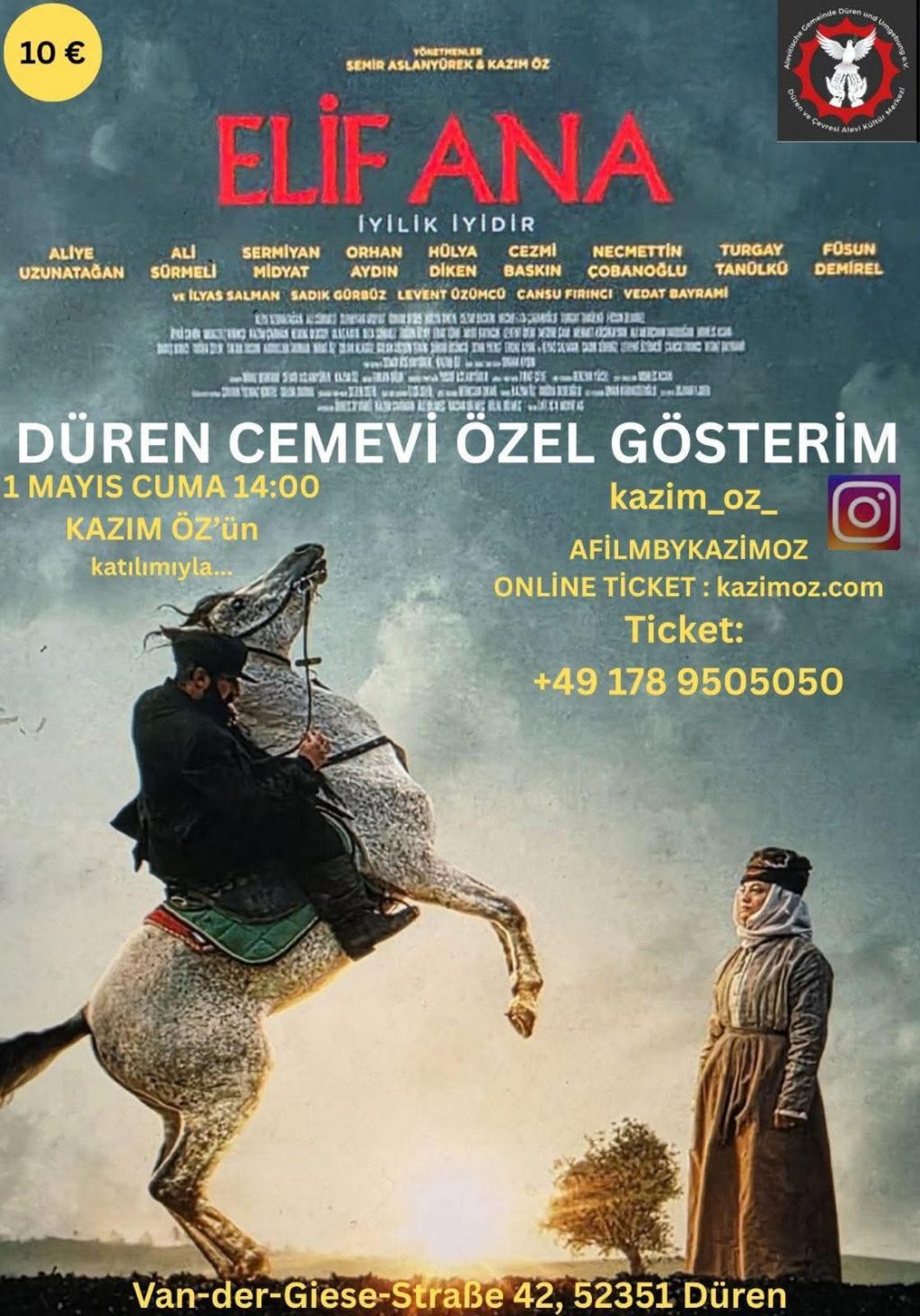 ⌈AHA⌉ Almanya’nın Düren kentinde faaliyet gösteren Düren Cemevi, kültürel etkinlikler kapsamında anlamlı bir organizasyona ev sahipliği yapıyor. Yönetmenliğini Semir Aslanyürek ve Kazım Öz’ün üstlendiği “Elif Ana – İyilik İyidir” filmi, 1 Mayıs’ta özel gösterimle izleyiciyle buluşacak.