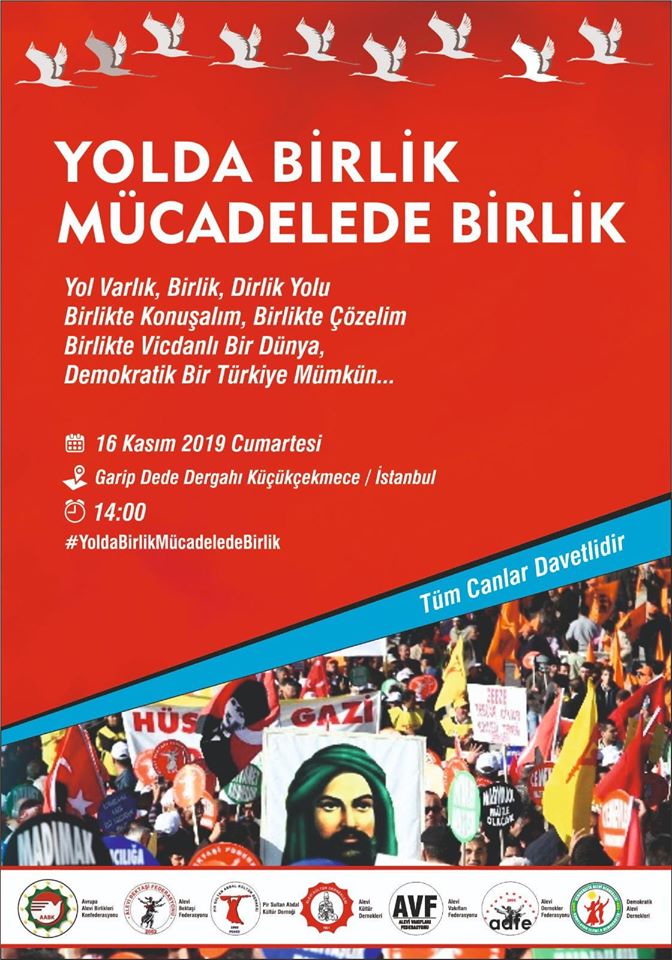 7 Alevi çatı kurumu, ‘İnancımıza, yolumuza, davamıza sahip çıkmak için bir araya geliyoruz’ şiarıyla 16 Kasım Cumartesi günü saat 15.00’te İstanbul’da bulunan Garip Dede Dergahı’nda buluşuyor.