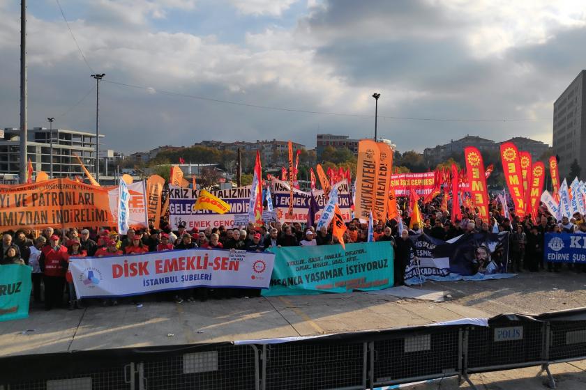 Miting için kitle toplanma noktası olan Dikilitaş’ta bir araya geldi. KESK ve DİSK olmak üzere iki kol halinde sıralanan kurumlar, halaylar ve marşlarla kortej oluşturdu. Kitle yol boyunca AKP iktidarını, açlık, sefalet ve yoksulluğu protesto etti.