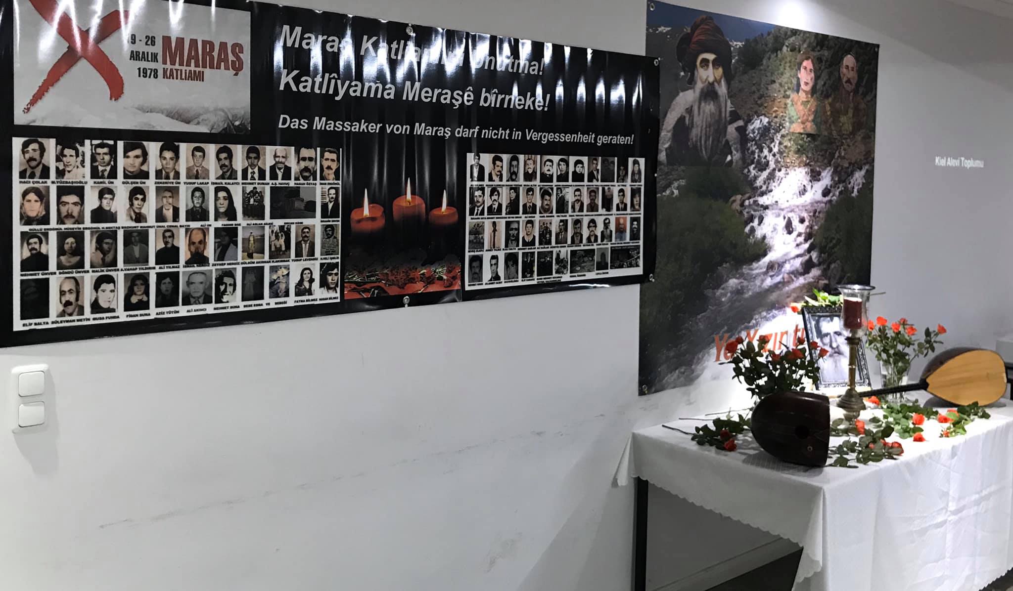AHA –  Maraş Katliamı‘nda yaşamını yitiren canlar, katliamın 41. Yılında Kiel Alevi Toplumu’nda  anıldı. Dergah  binasında düzenlenen anma etkinliğine, Kiel Alevi Toplumu’nun üyelerinin yanı sıra, demokratik kitle kurumlarından canlarımızda katıldı. Kalabalık bir kitlenin katıldığı anma etkinliği delil uyandırılarak başlatıldı. Kiel Alevi Toplumu’nda hızmet yürüten pirin delil gülbengini okuduğu anma etkinliğinde, başta Alevilik davası uğruna mücadele ederken katledilenler olmak üzere, insanlığın değerleri uğruna mücadele ederken vurulup düşenleri  için bir dakikalık saygı saygı duruşu yapıldı. bir