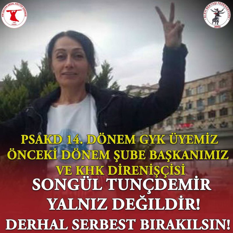 Songül Tunçdemir önce adli kontrol şartıyla serbest bırakılırken bir süre sonra savcının itirazı nedeniyle Tarık Kaya Can’ımızla birlikte tutuklanmıştır.