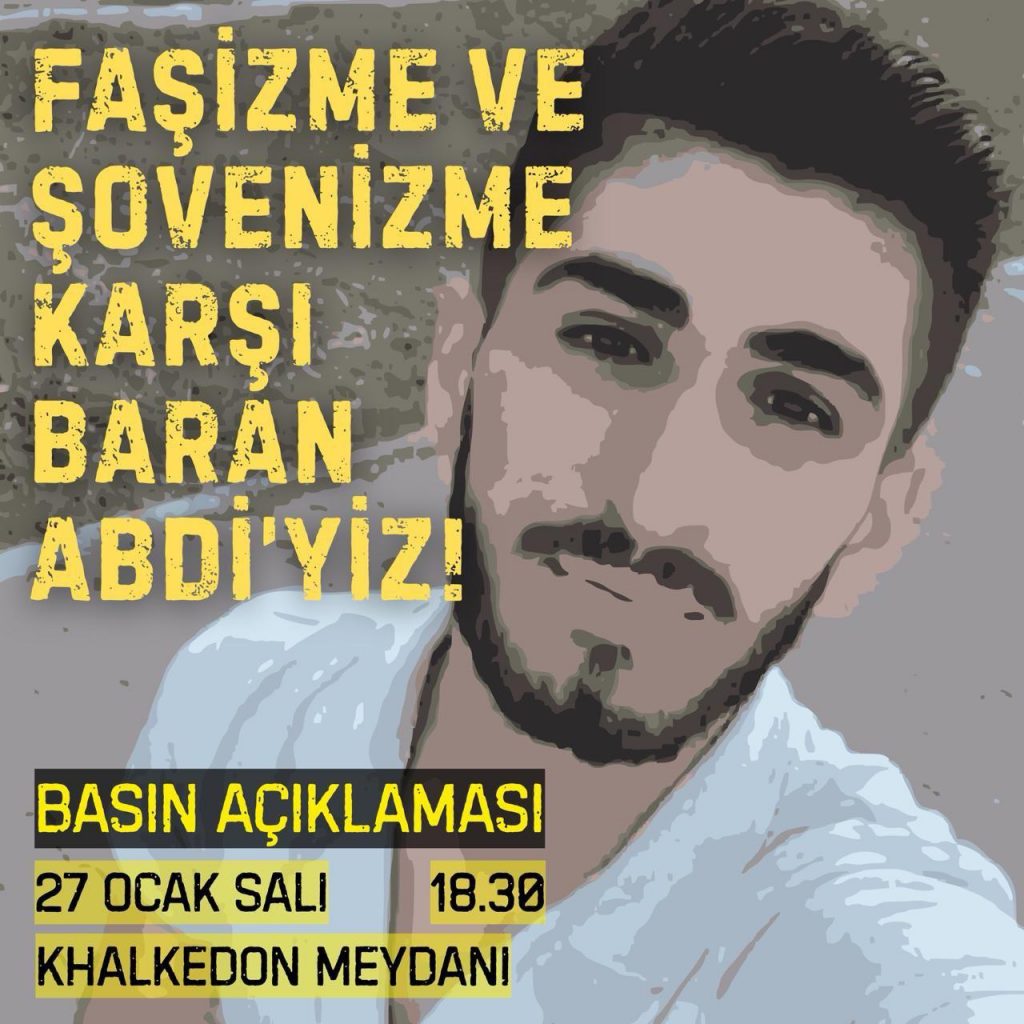 ⌈AHA⌉ Tarsus’ta dün, Milliyetçi Hareket Partisi’li olduğu belirtilen bir kişi tarafından silahlı saldırıyla katledilen Baran Abdi için İstanbul’da eylem çağrısı...