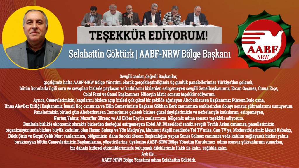AABF-NRW Bölge Yönetimi adına Selahattin Göktürk’den teşekkür açıklaması AABF-NRW Bölge Yönetimi adına Selahattin Göktürk yazılı bir açıklama yaparak, AABF NRW...