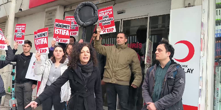 Emekçi Hareket Partisi (EHP) İstanbul İl Örgütü, deprem bölgesine gidecek çadırları para karşılığı satan Kızılay’ı Kadıköy’deki Kızılay Şube Müdürlüğü önüne...