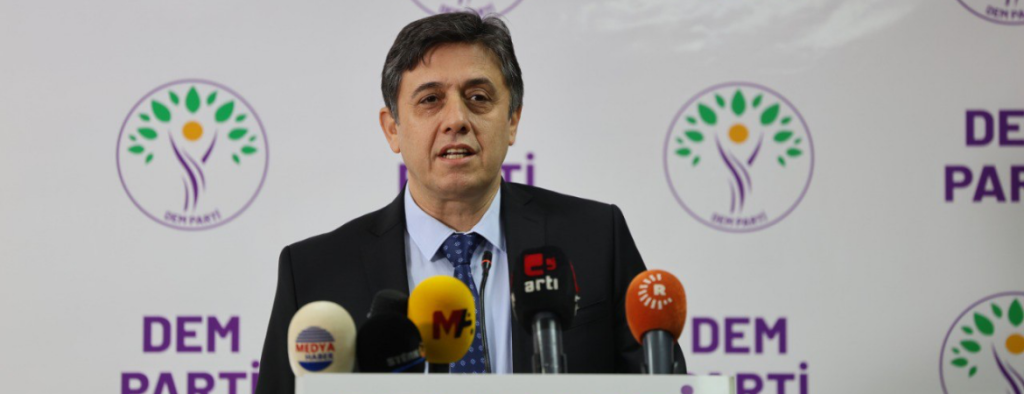 DEM Parti Demokratik Yerel Yönetimlerden Sorumlu Eş Genel Başkan Yardımcısı Mehmet Rüştü Tiryaki, DEM Parti Genel Merkezi'nde düzenlediği basın toplantısında...