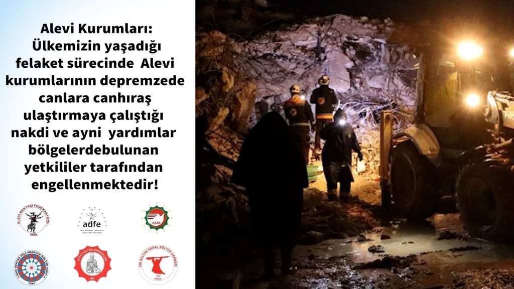 Alevi kurumları yazılı bir açıklama yaparak, depremzedelere ulaştırmaya çalıştığı nakdi ve ayni yardımlar deprem bölgelerinde bulunan yetkililer tarafından engellendiğini kamuoyuna...