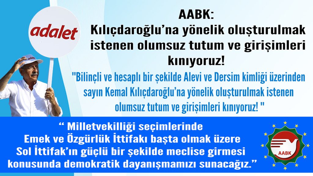 Avrupa Alevi Birlikleri Konfederasyonu (AABK), Türkiye’de 14 Mayıs 2023 tarihinde yapılması planlanan seçimlere ilişkin Avrupa'daki Alevi kurumlarına açıklama niteliği taşıyan...