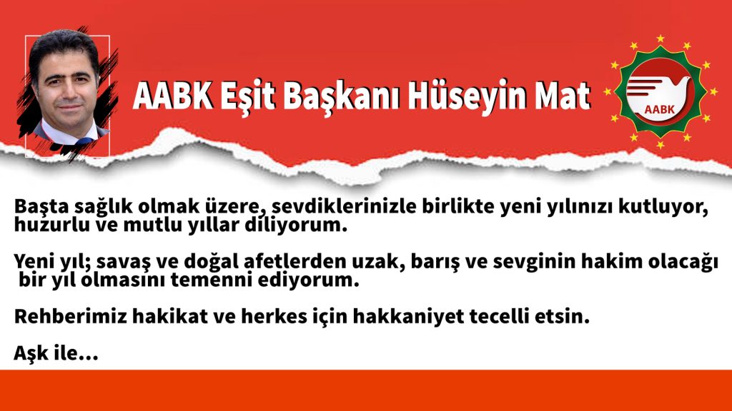 AABK Eşit Başkanı Hüseyin Mat, yeni yıl masajı yayınladı. Başkan Mat, sosyal medya üzerinden paylaştığı yeni yıl mesajında 2024 yılının...