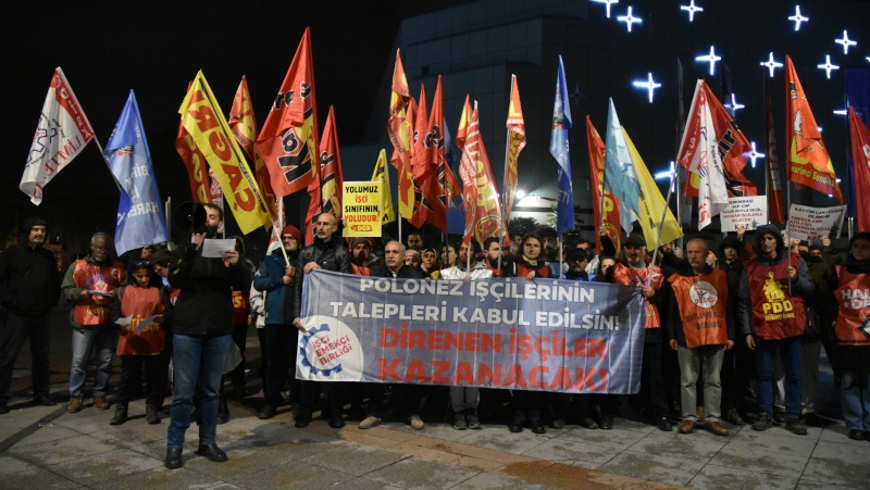 Direnişteki Polonez işçileriyle dayanışmak için eyleme geçen İşçi Emekçi Birliği, "Polonez işçilerinin kazanımı tüm işçi sınıfının kazanımı olacaktır. Biz İşçi...