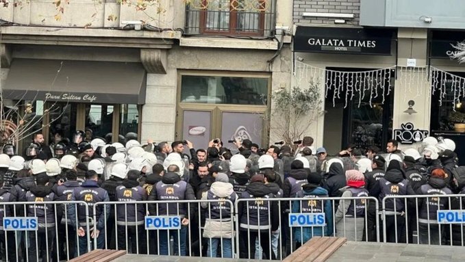 Gazeteciler Cihan Bilgin ve Nazım Daştan'ın Türkiye'nin SİHA saldırısıyla katledilmesini protesto ederken gözaltına alınan, editörümüz Pınar Gayıp'ın da aralarında bulunduğu...