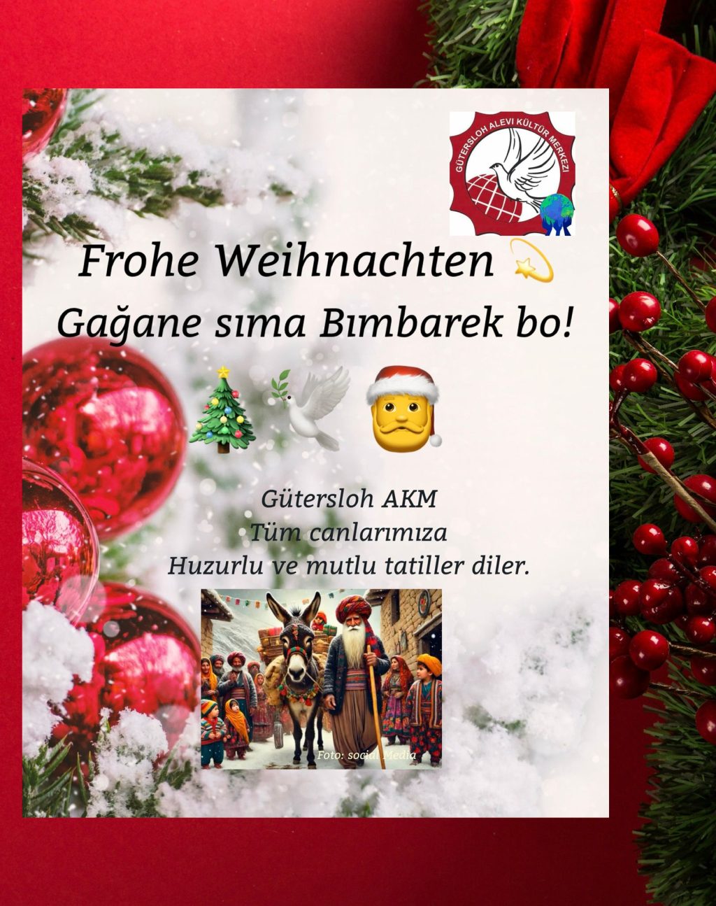 Gütersloh Alevi Kültür Merkezi yazılı bir açıklama yaparak, Gağan ve Noel'i kutladı. Gütersloh Alevi Kültür Merkezi Yönetim Kurulu adına başkan...