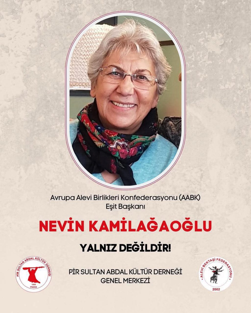 Haber Merkezi - Avrupa Alevi Birlikleri Konfederasyonu (AABK) Eşit Başkanı Nevin Kamilağaoğlu hakkında Türkiye’de çıkarılan yakalama kararına yönelik tepkiler büyüyor....