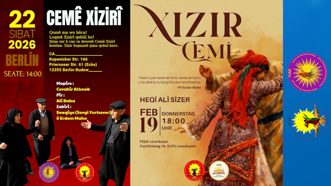 ⌈AHA⌉Demokratik Alevi Dernekleri’ne bağlı Zeve Sultan Xıdır Cemevi tarafından Xızır Cemi düzenleneceği duyuruldu. Paylaşılan görselde yer alan bilgilere göre cem,...