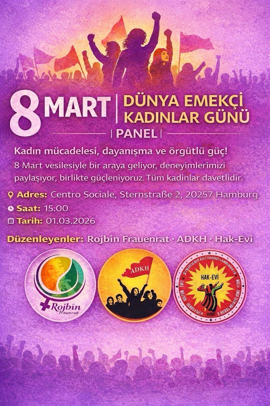 ⌈AHA⌉ Almanya’nın Hamburg kentinde 8 Mart Dünya Emekçi Kadınlar Günü kapsamında “Kadın mücadelesi, dayanışma ve örgütlü güç” temasıyla bir panel...