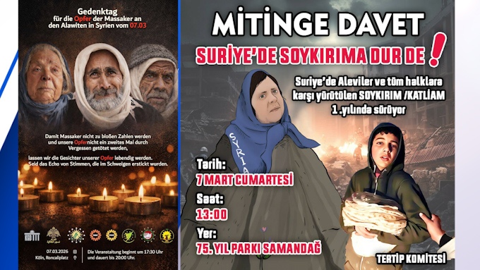 ⌈AHA⌉ Suriye’de Alevilere yönelik saldırıların birinci yılı dolayısıyla yapılan açıklamada, yaşananların “açık bir soykırım” olduğu vurgulanarak uluslararası topluma derhal harekete...