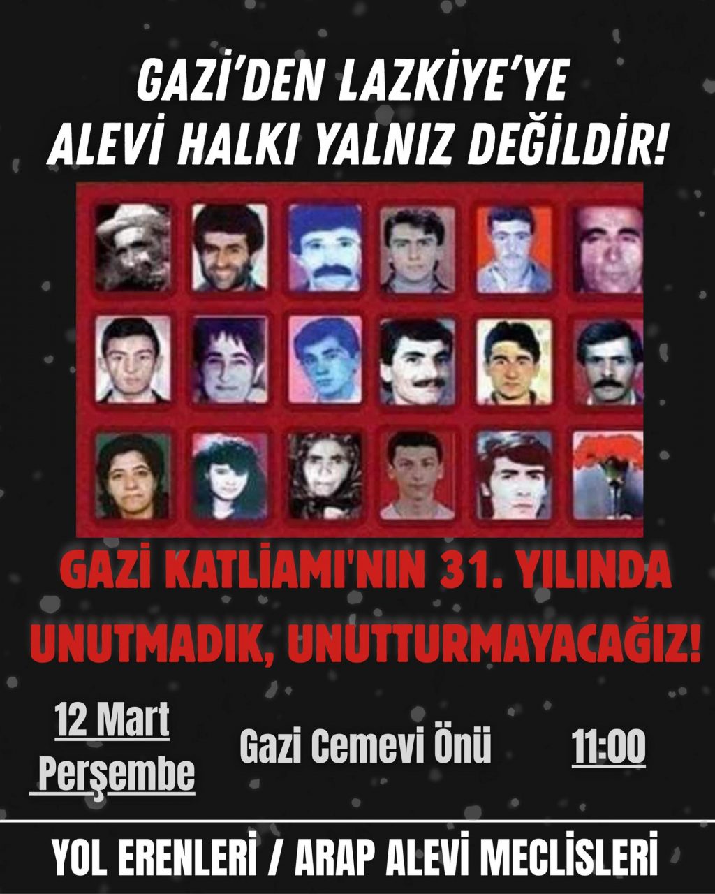 ⌈AHA⌉ Gazi Katliamı’nın 31. yıl dönümünde anma çağrıları sürüyor. Yol Erenleri ve Arap Alevi Meclisleri tarafından yapılan çağrıda, Alevi halkının...