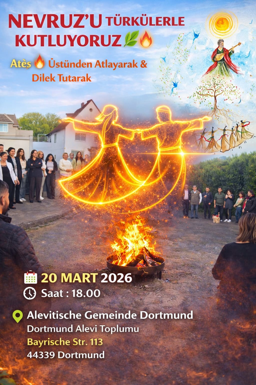 ⌈Selçuk Atbaşı⌉ Almanya’nın Dortmund kentinde faaliyet yürüten Dortmund Alevi Toplumu, 20 Mart 2026 tarihinde düzenleyeceği etkinlikle Nevruz’u türkü ve geleneksel ritüeller...