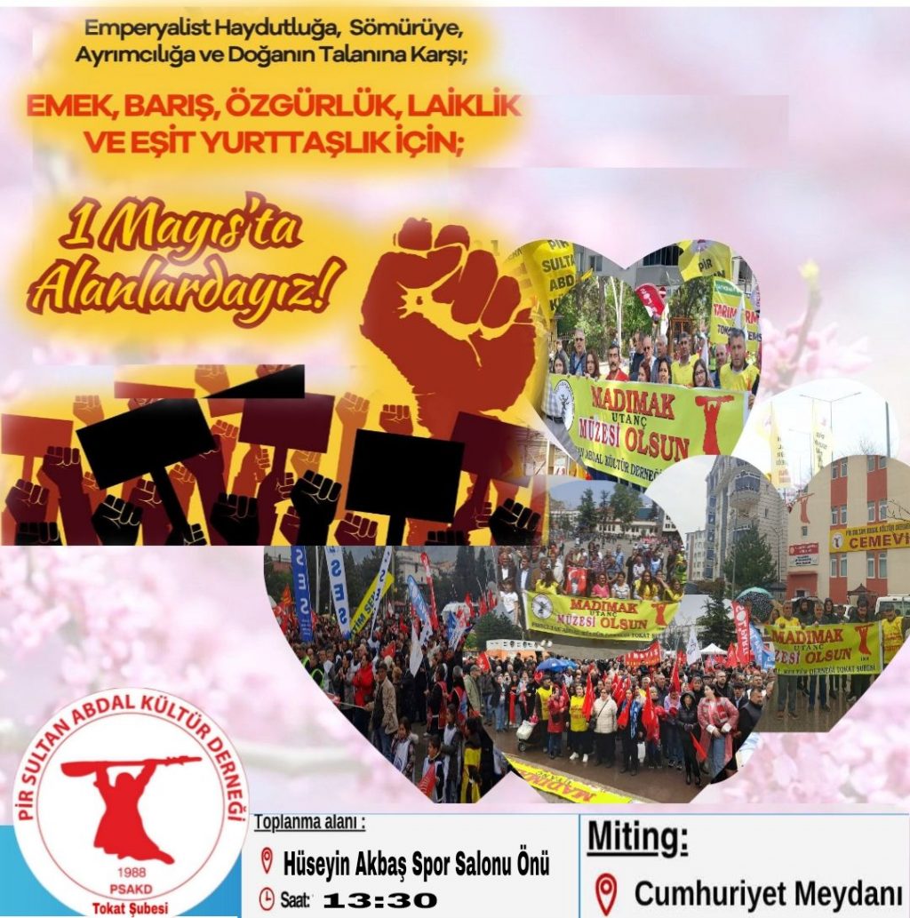 ⌈AHA⌉ Tokat Pir Sultan Abdal Kültür Derneği, 1 Mayıs Emek ve Dayanışma Günü kapsamında yurttaşları alanlara davet etti. Yapılan çağrıda...