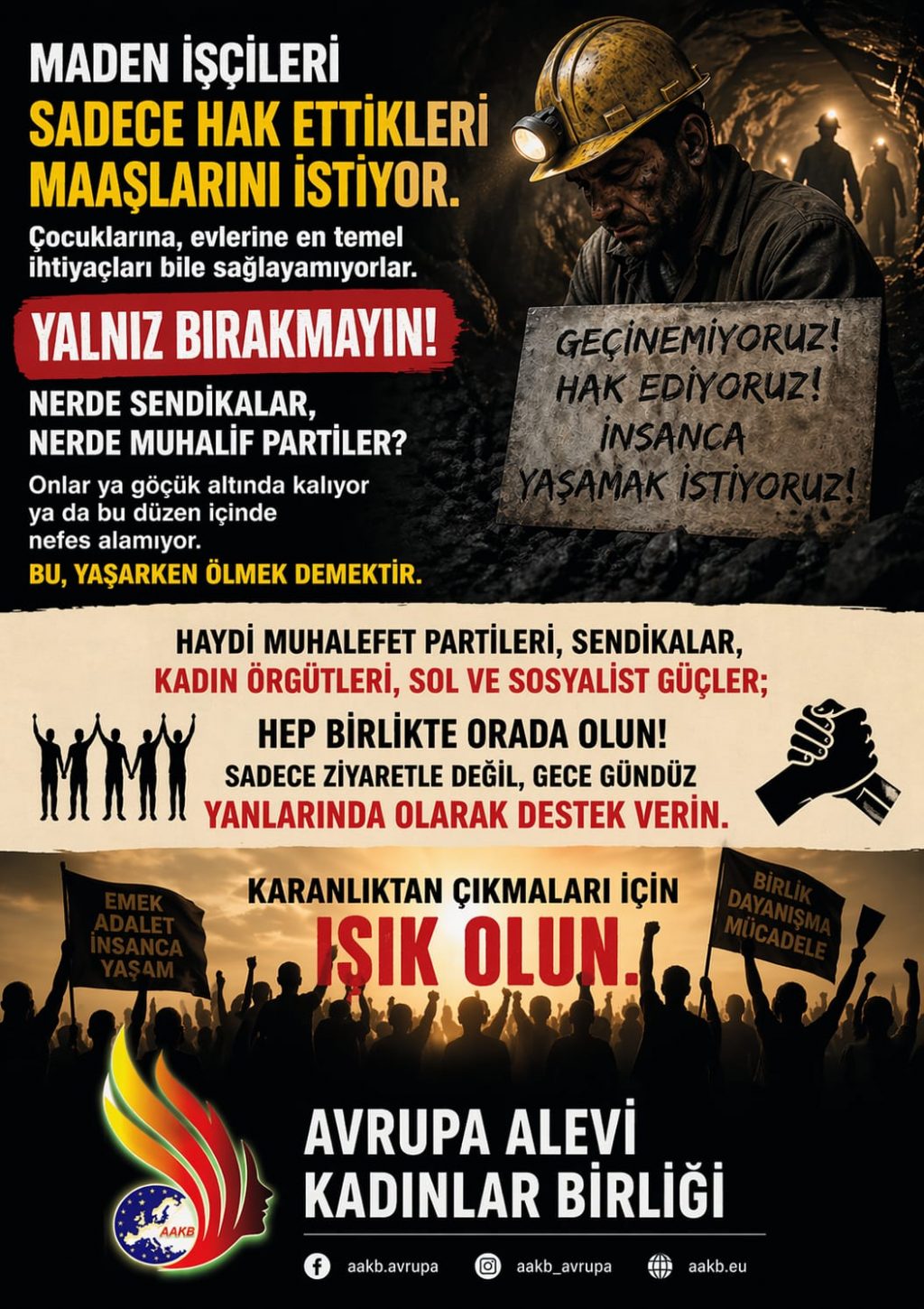 ⌈AHA⌉ Avrupa Alevi Kadınlar Birliği (AAKB), maden işçilerinin yaşadığı ekonomik ve sosyal zorluklara dikkat çekerek kamuoyuna destek çağrısında bulundu. Yapılan...