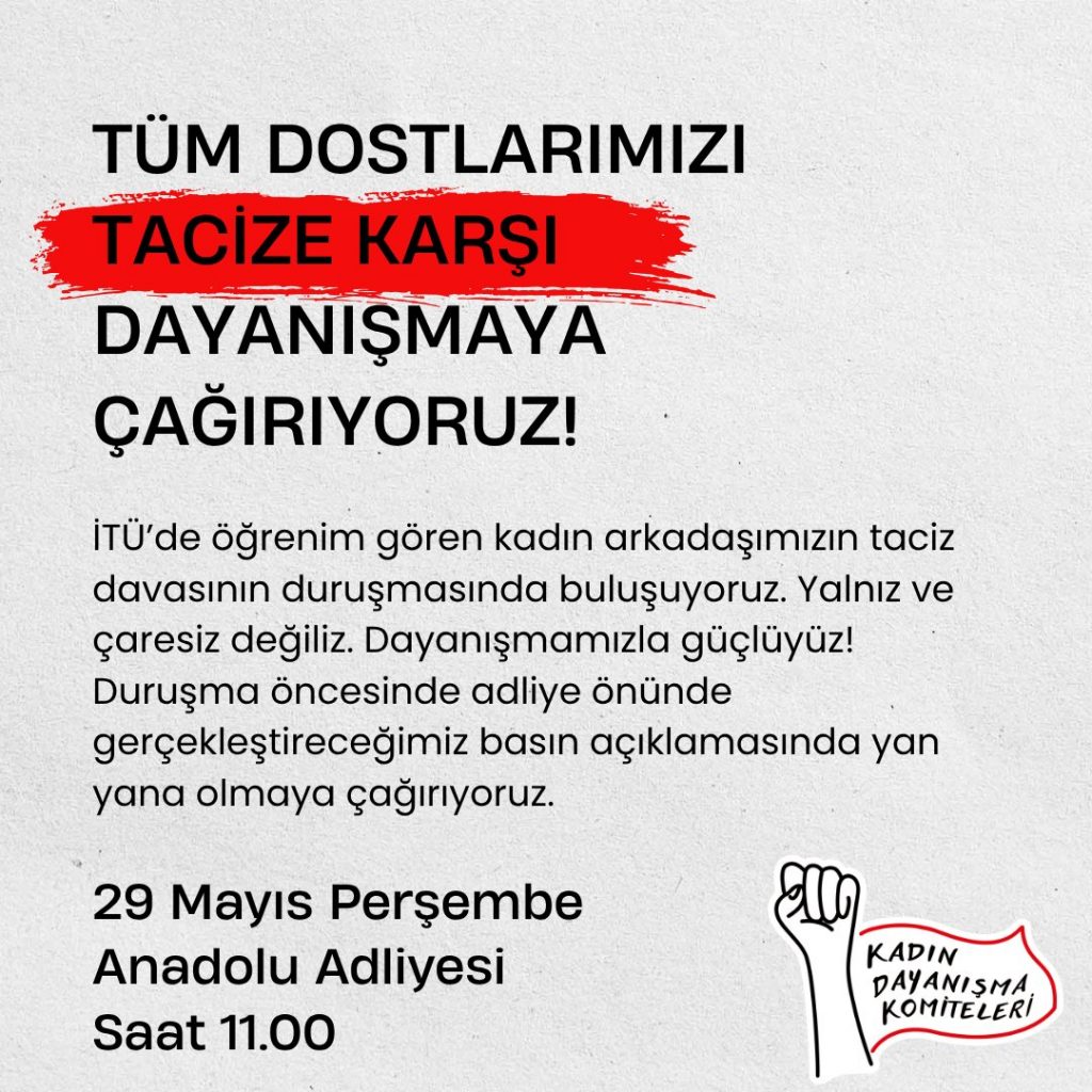 Haber Merekzi - İstanbul Teknik Üniversitesi’nde (İTÜ) öğrenim gören bir kadın öğrencinin uğradığı cinsel taciz sonrası açılan dava kapsamında, Kadın...