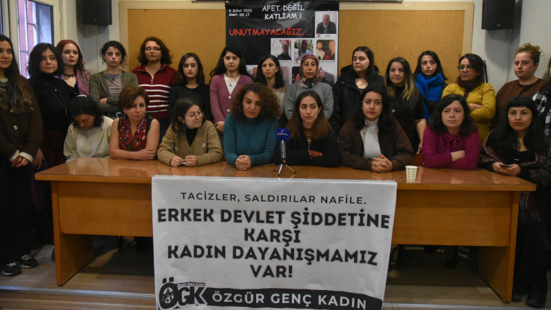 Özgür Genç Kadın (ÖGK), Merkezi Koordinasyon (MK) üyeleri Sinem Çelebi'nin yaşadığı polis tacizine ilişkin İnsan Hakları Derneği (İHD) İstanbul Şubesi'nde...