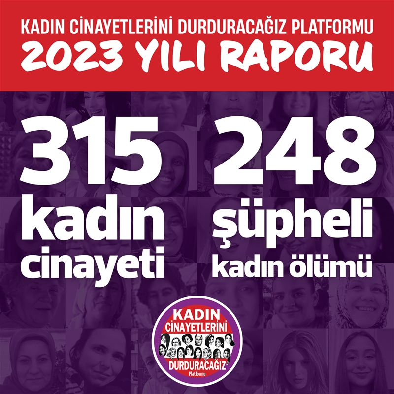 Kadın Cinayetlerini Durduracağız Platforumu, 2023 yılında erkekler tarafından öldürlen kadınlara ilişkin veri raporu yayınladı: ''2023 Yılında Erkekler Tarafından 315 Kadın...