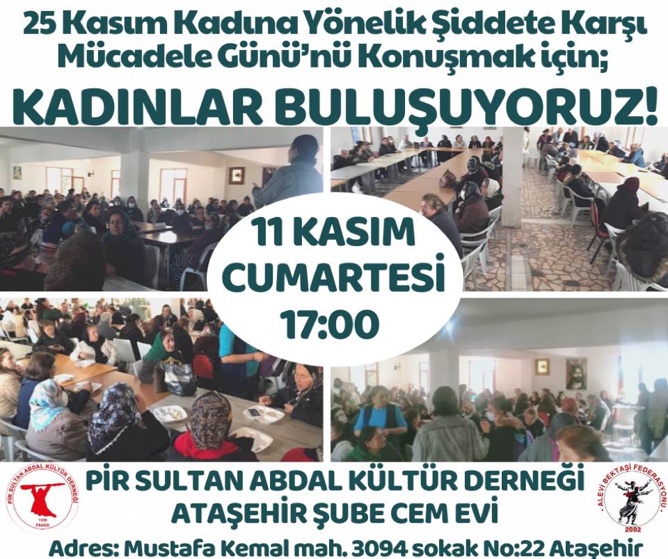 PSAKD Ataşehir Şube - Cemevi, ''25 Kasım Kadına Yönelik Şiddete Karşı Uluslararası Mücadele Günü'' dolayısıyla kitlesel bir kadın buluşması düzenliyor....