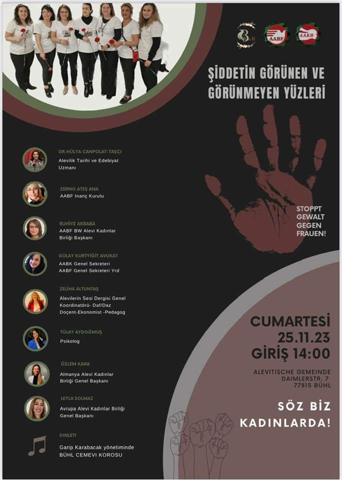 "25 Kasım Kadına Yönelik Şiddete Karşı Uluslararası Mücadele Günü" dolayısıyla, Almanya Alevi Kadınlar Birliği ( AAKB), AABF ve BW Kadınlar...