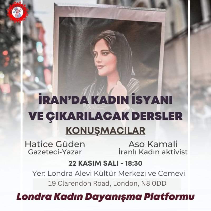Cemevi ve Londura Kadın Dayanışma Platforumu, 22 Kasım 2022 tarihinde, " İran'da kadın isyanı ve çıkarlacak dersler" konulu panel düzenliyor....