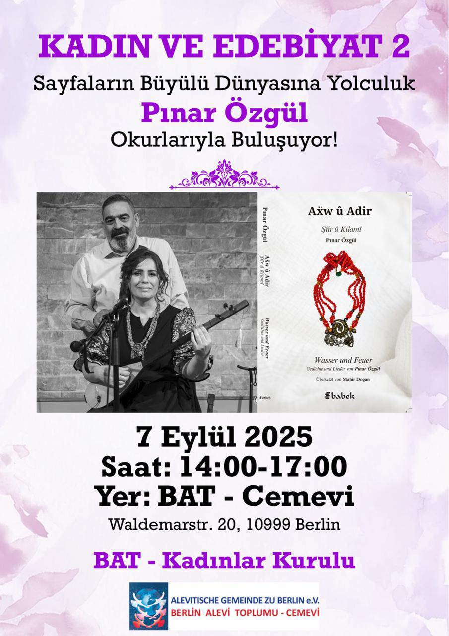 ⌈Haber Merkezi⌉ Berlin Alevi Toplumu-Cemevi Kadınlar Kurulu, 2. Kadın ve Edebiyat Etkinliği’nde edebiyatseverleri bir araya getiriyor. Etkinliğe, “Aẍw û Adir”...